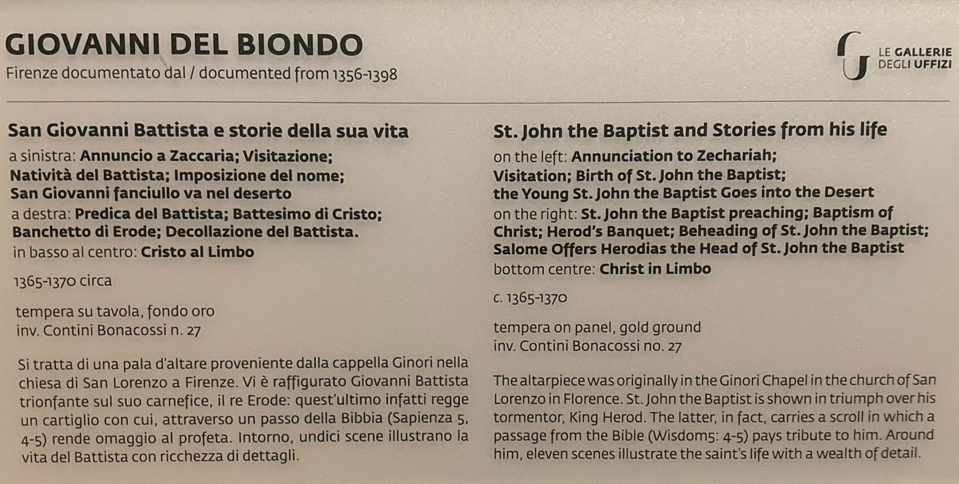 • From tax records it is known that Giovanni del Biondo lived and flourished in Florence where he died in 1399.