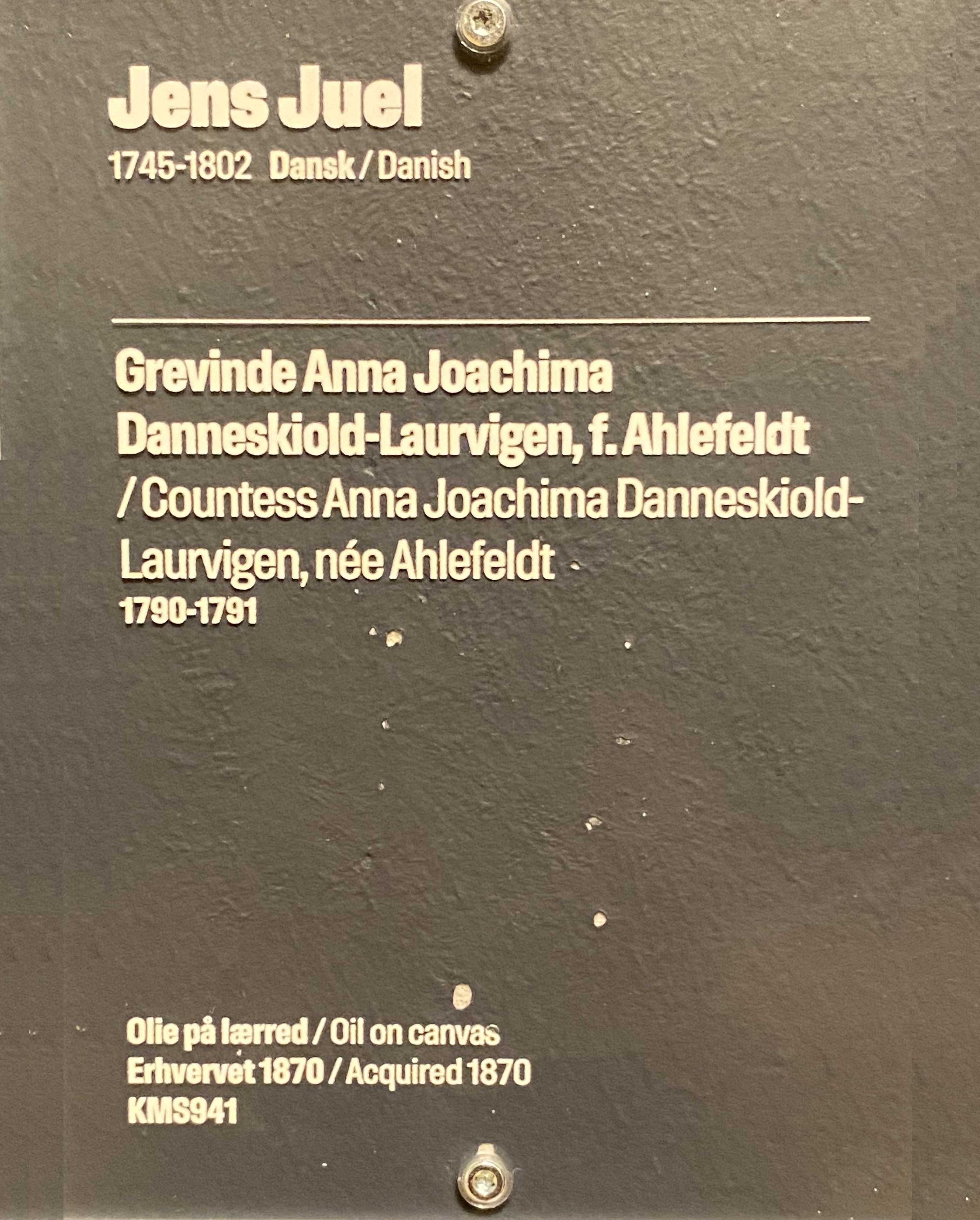 Jens Jørgensen Juel, Countess Anna Joachima Danneskiold-Laurvigen, née Ahlefeldt, 1790 – 1791