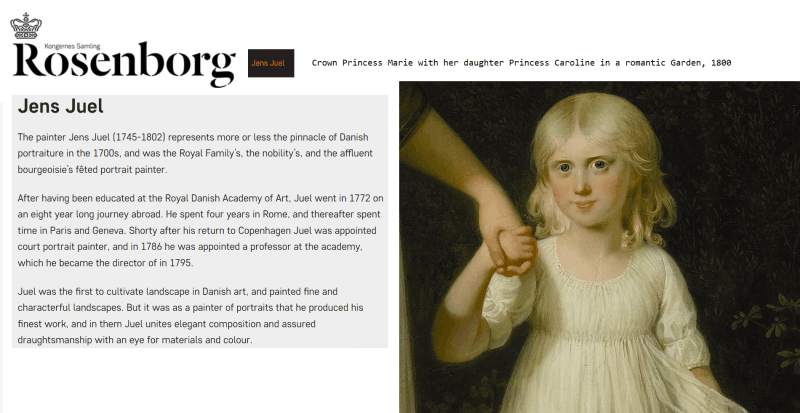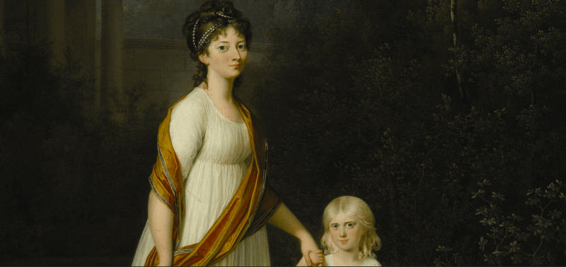 Jens Jørgensen Juel, Crown Princess Marie with her daughter Princess Caroline in a romantic Garden, 1800
