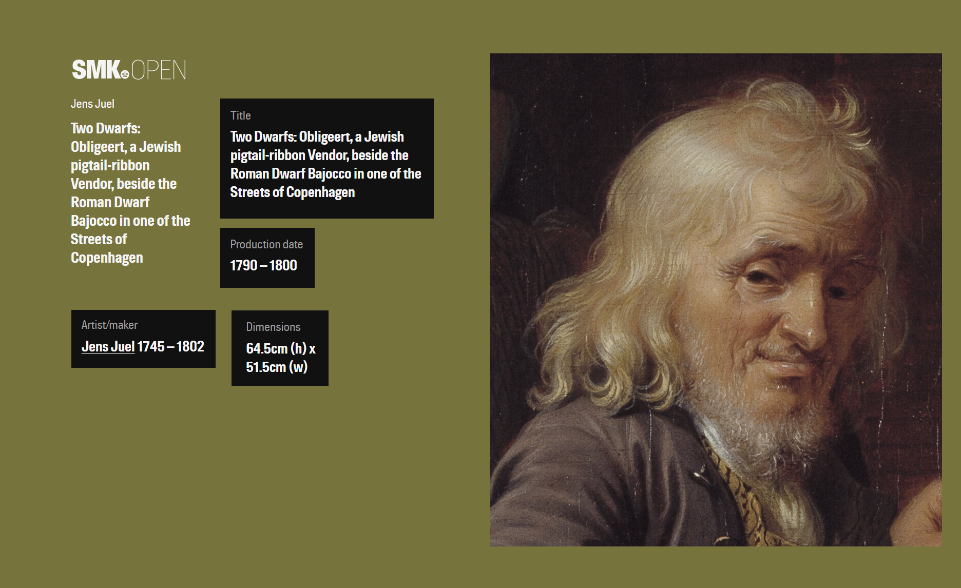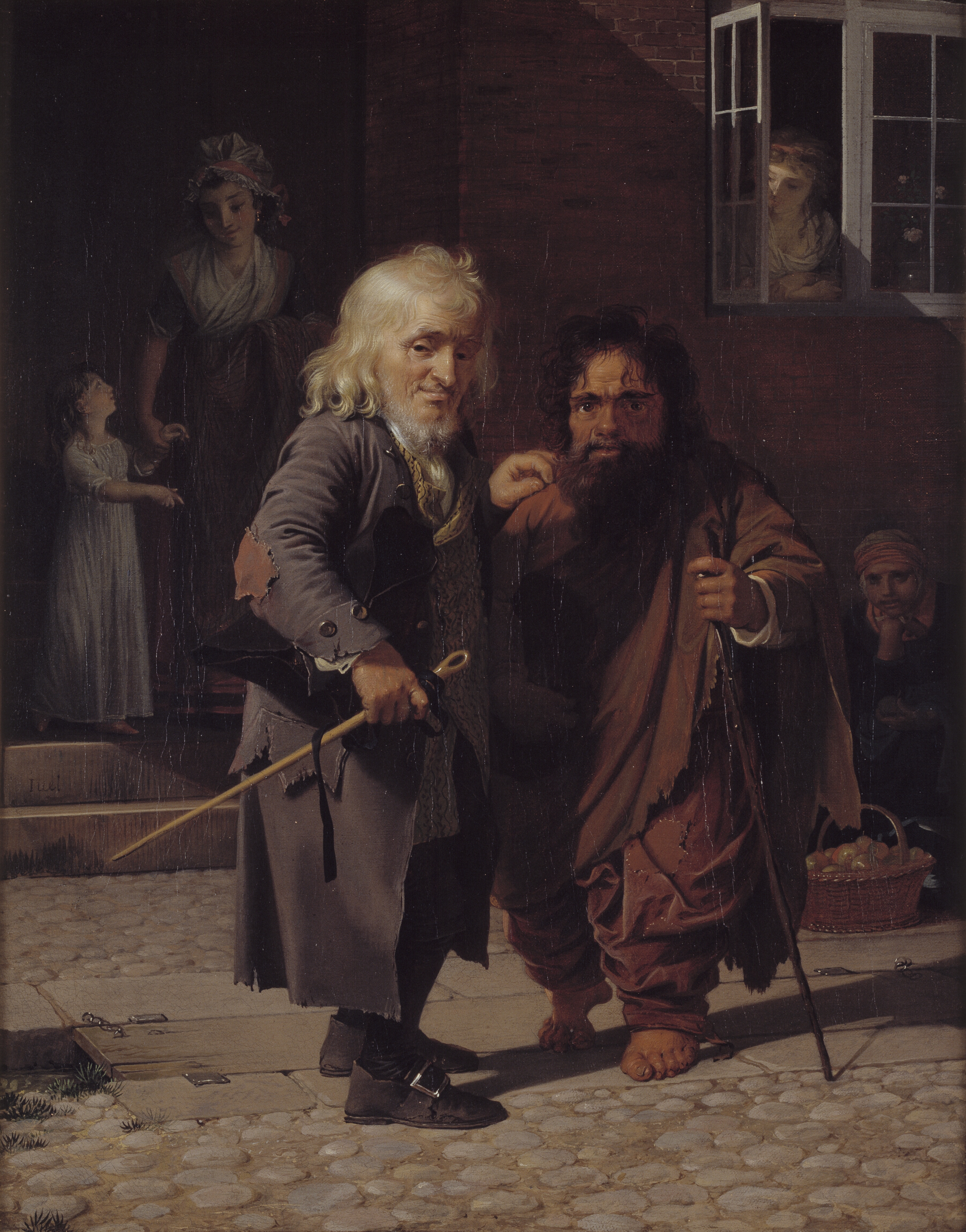 Jens Juel, Two Dwarfs Obligeert, a Jewish pigtail-ribbon Vendor, beside the Roman Dwarf Bajocco in one of the Streets of Copenhagen