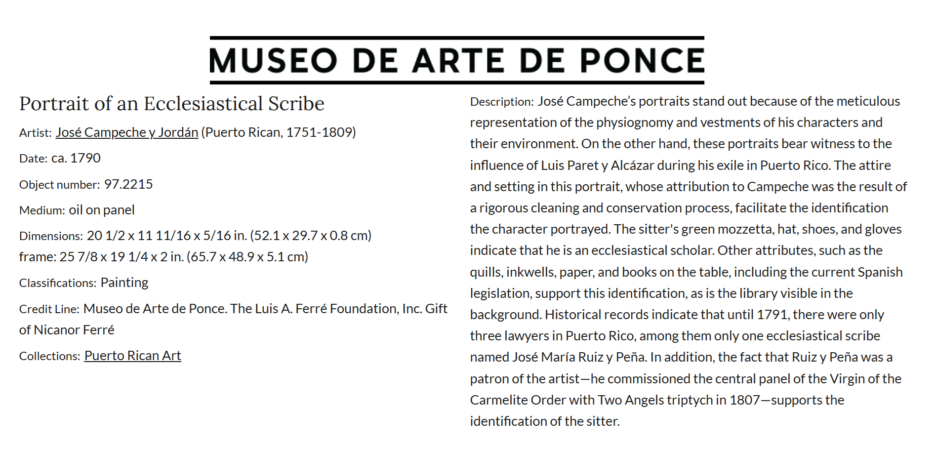 Jose Campeche y Jordan, Portrait of The Ecclesiastical Notary José María Ruiz y Peña, ca. 1790
