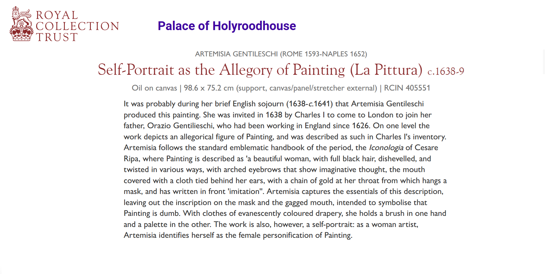 • In 1638, Artemisia joined her father in London at the court of Charles I of England, where Orazio had become court painter.