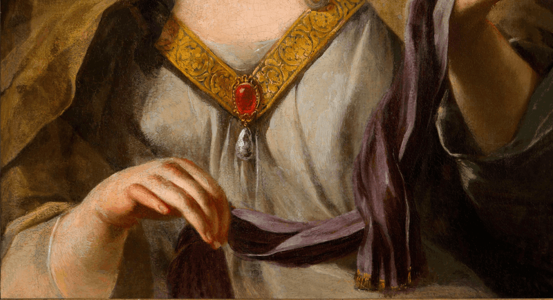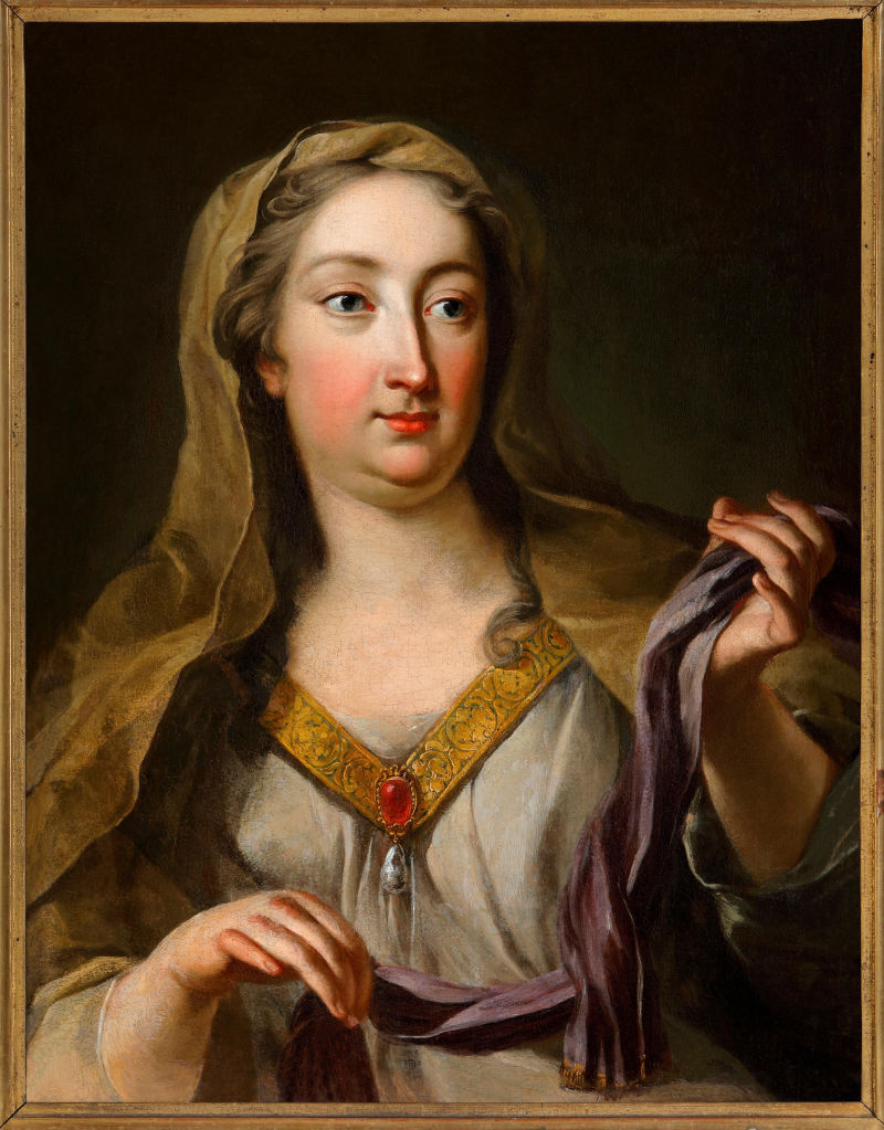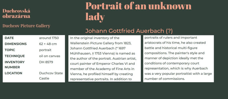 • The displayed painting is a crop from: Johann Gottfried Auerbach, Self-portrait in front of the easel, with the profile portrait of Empress Elisabeth Christine (1697 - 1753), mother of Empress Maria Theresa (1717 - 1780), 1737.