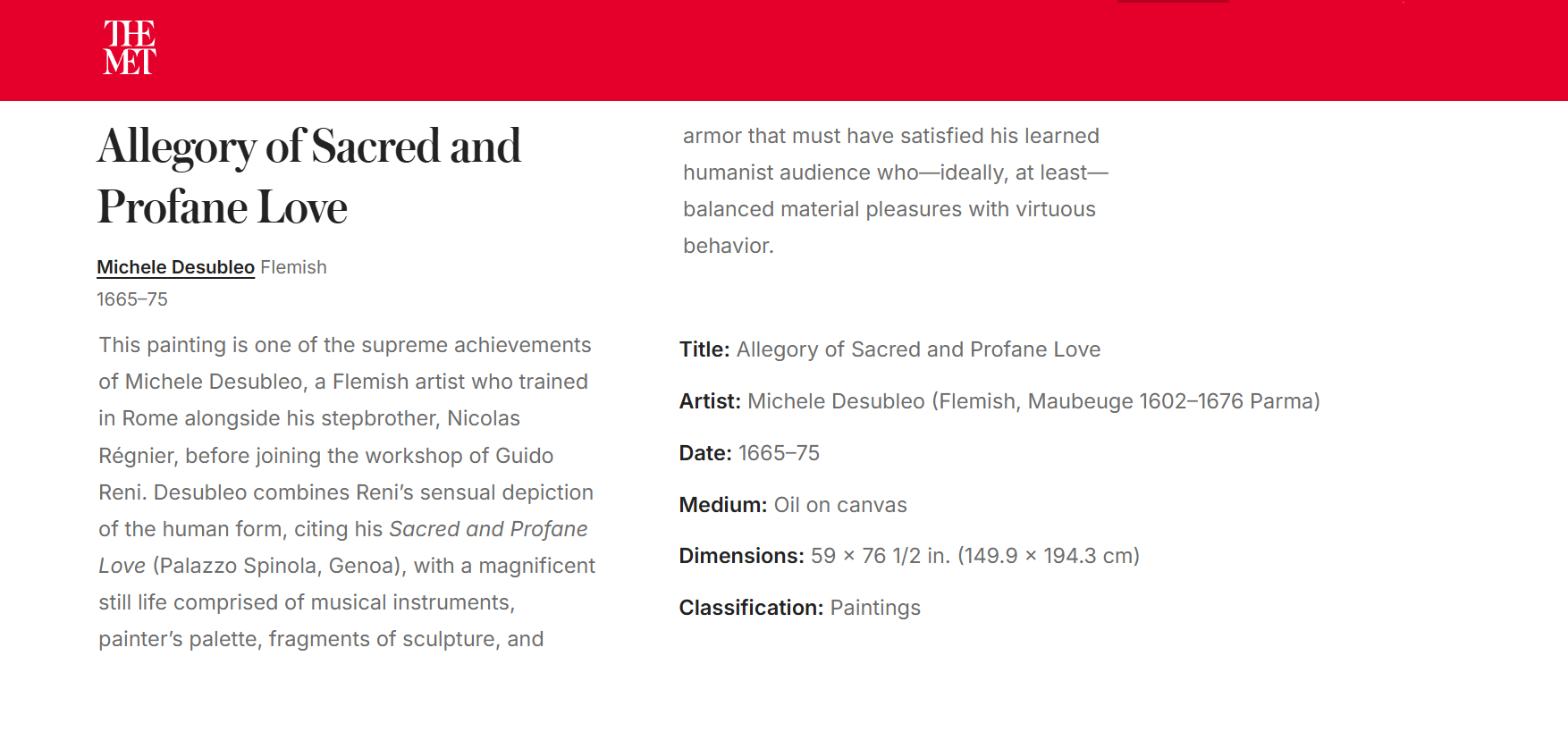 • After 1665, there is evidence of his presence in Parma, where he left a large altarpiece with the Madonna and Saints for the cathedral and a canvas on the secular subject of Sacred Love Triumphing over Profane Love.