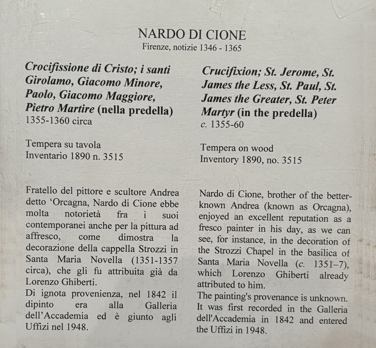 • Of Nardo's independently attributed works is his Crucifixion, a central panel of a tabernacle.