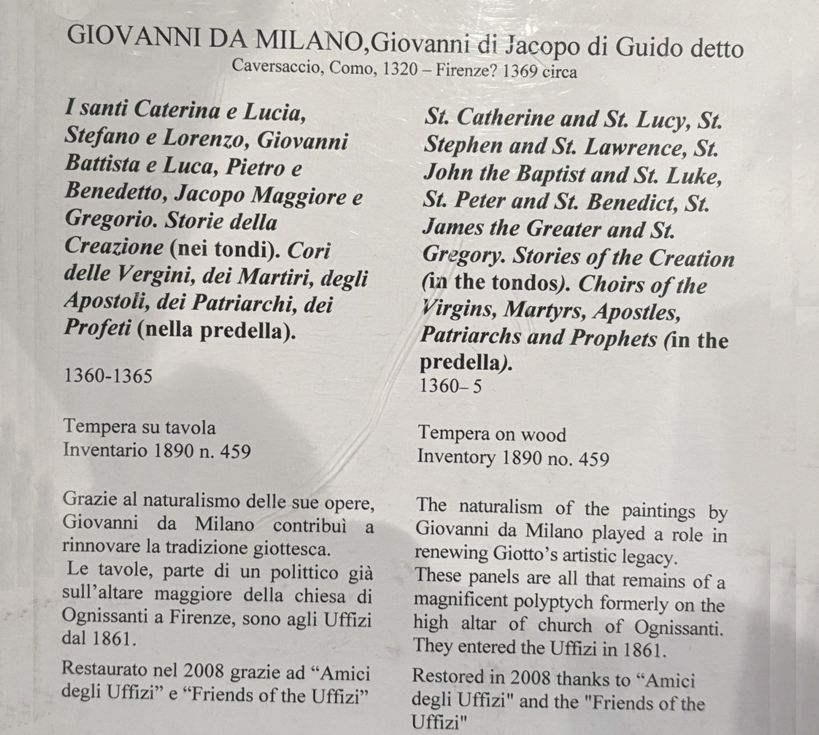 Hailing from Lombardy, the earliest documentation shows Giovanni in Florence on October 17, 1346, under the name Johannes Jacobi de Commo, listed amongst the foreign painters living in Tuscany.