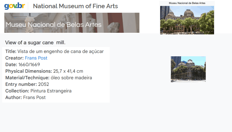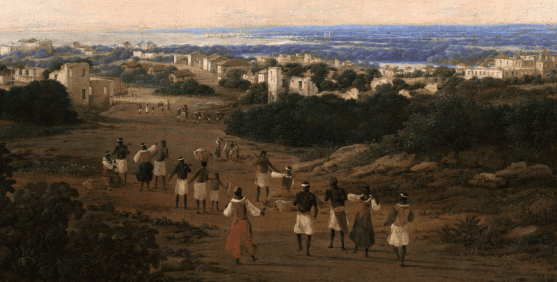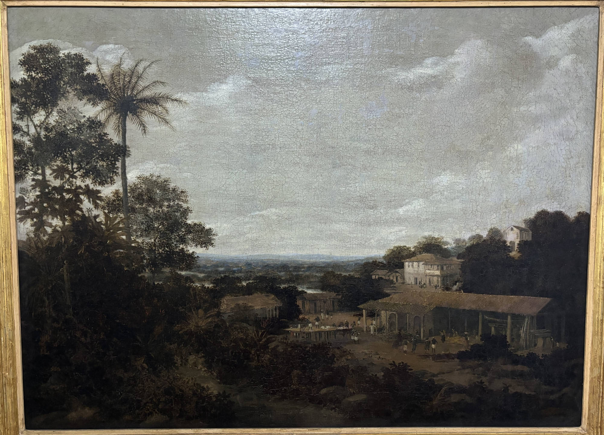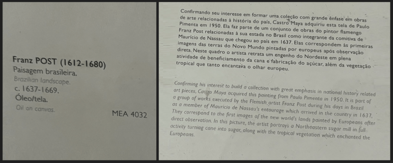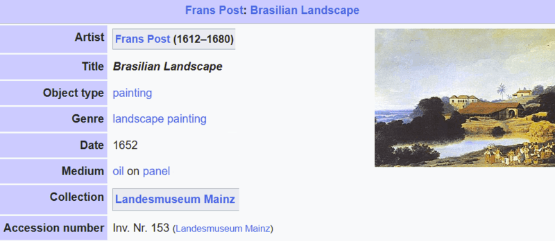 • The displayed painting is a crop from Frans Jansz Post, A Brazilian Landscape, 1650.
