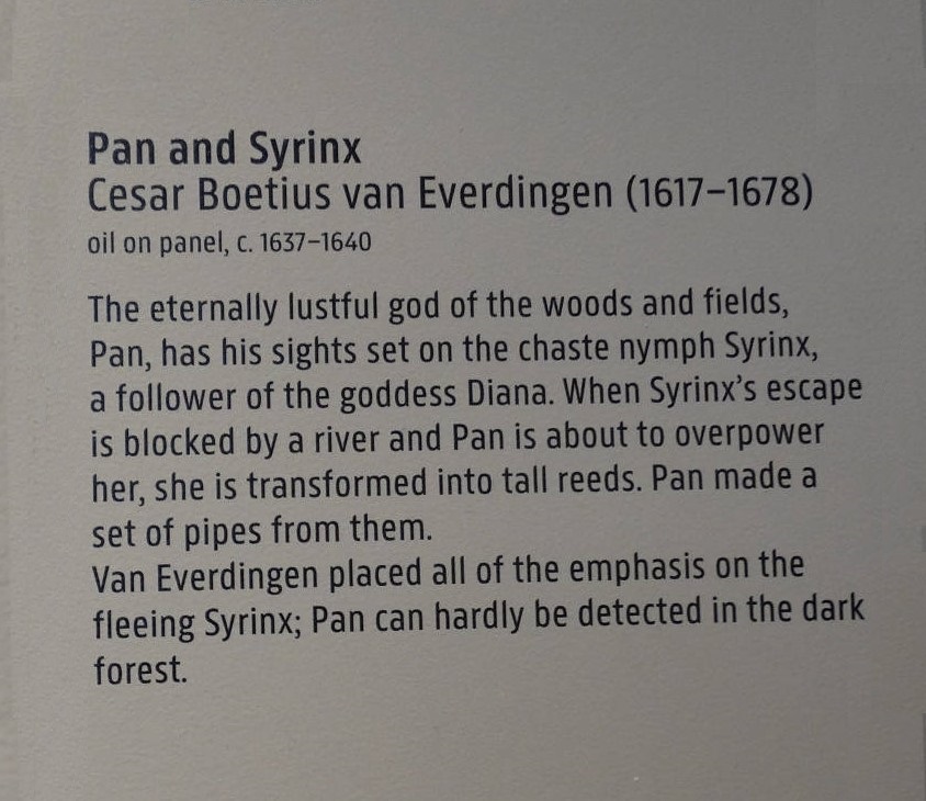 • The displayed painting is a crrop from: Cesar Boetius van Everdingen, Pan and Syrinx, c. 1637-1640.