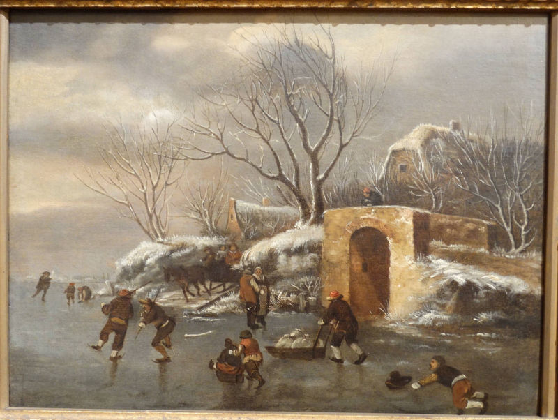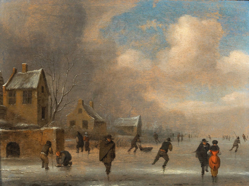 Claes Molenaer, Winter landscape with skaters, c. 1650