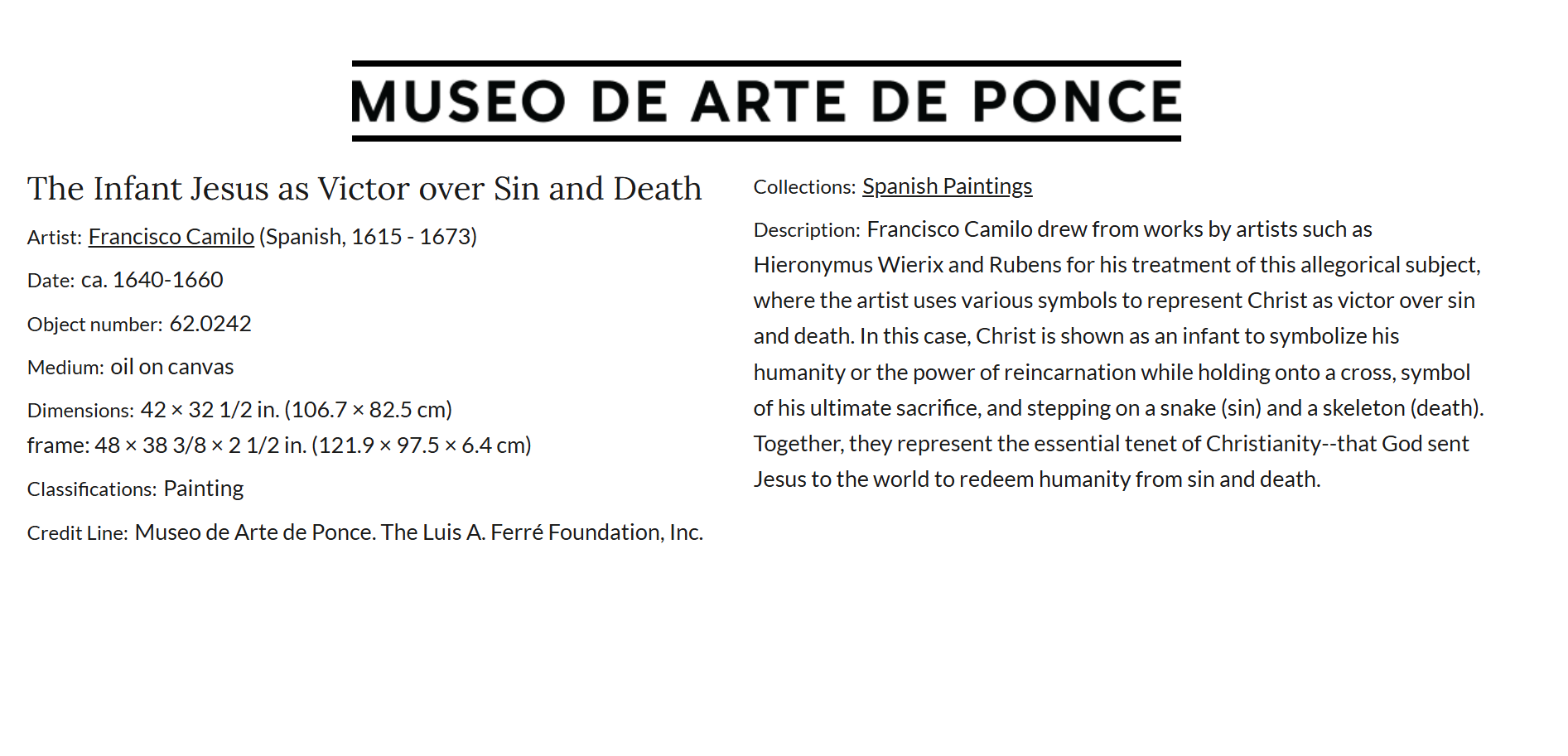 • At the age of 18, Camilo was asked to paint for the high altar of the Jesuits’ house at Madrid an image representing St. Francis Borgia.
