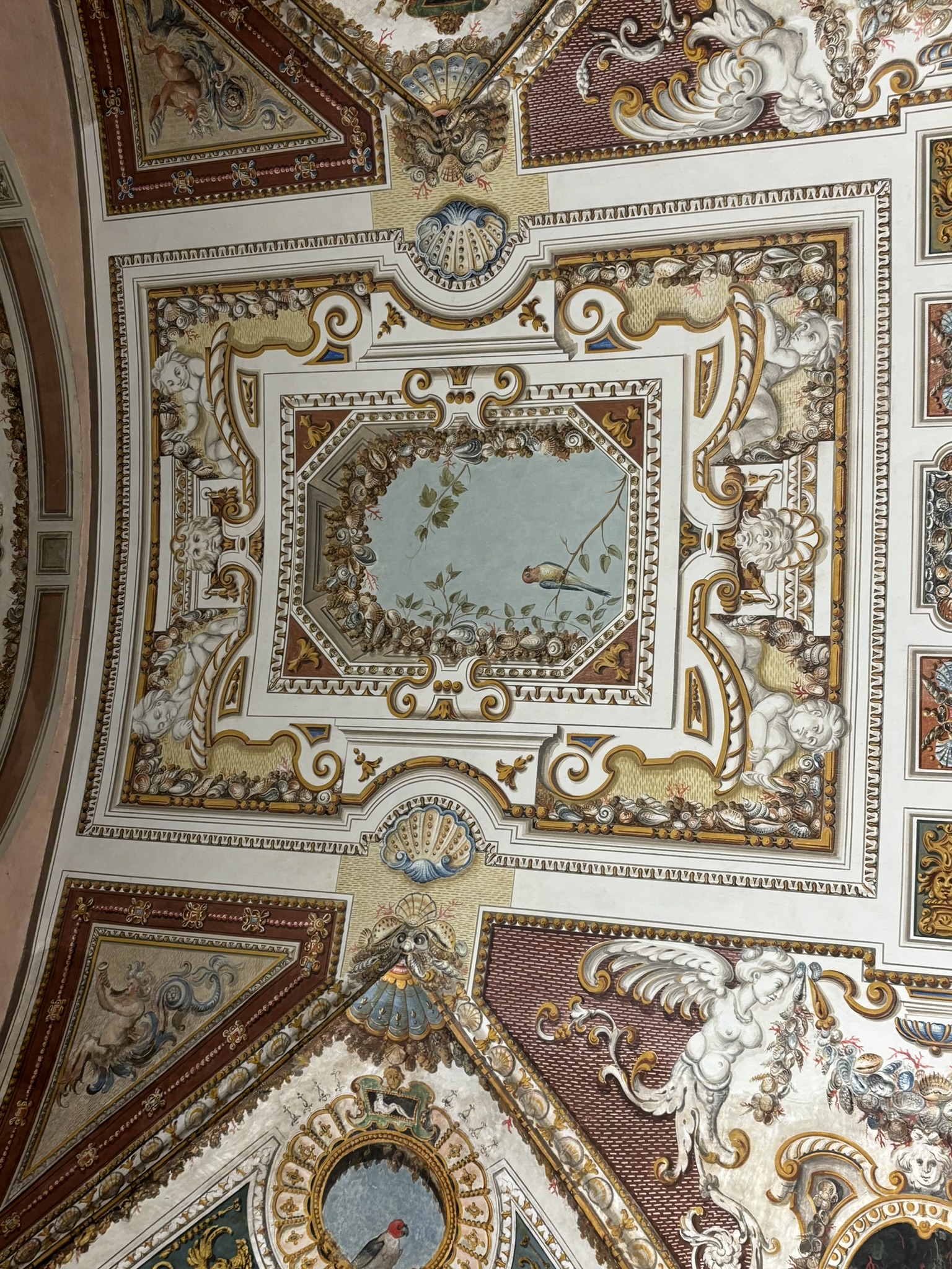 Orazio Riminaldi, he painted the four Evangelists and angels (1597) in the cupola of the Cathedral of Pisa; a Birth of the Virgin and Annunciation (1598) in the choir; and decoration of the organ in 1602.