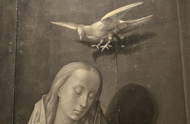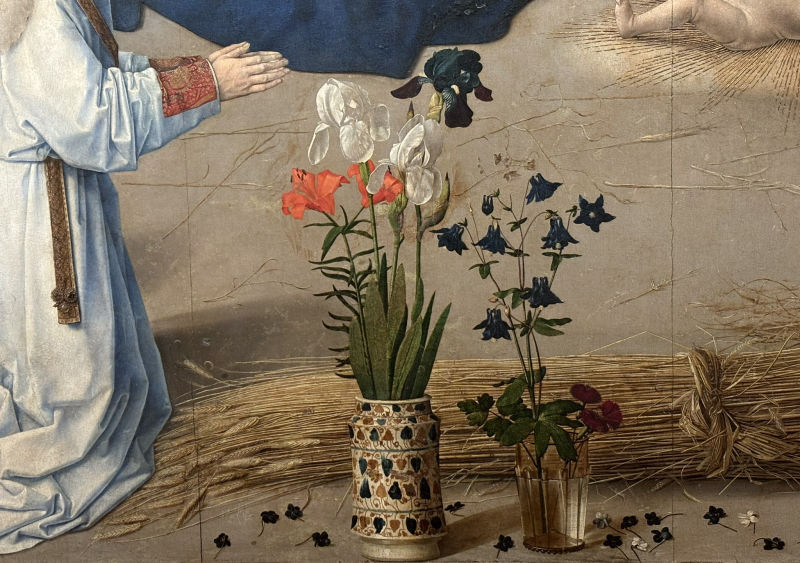 • The displayed painting is a crop from: Hugo van der Goes, A Benedictine Monk, ca. 1478.