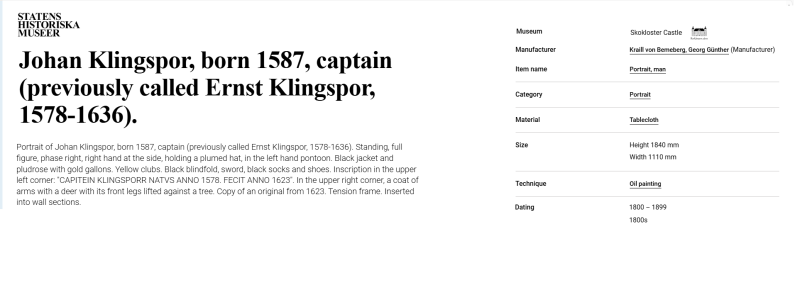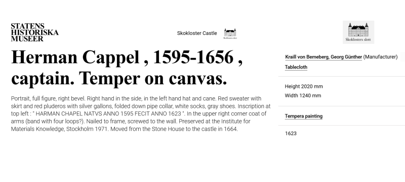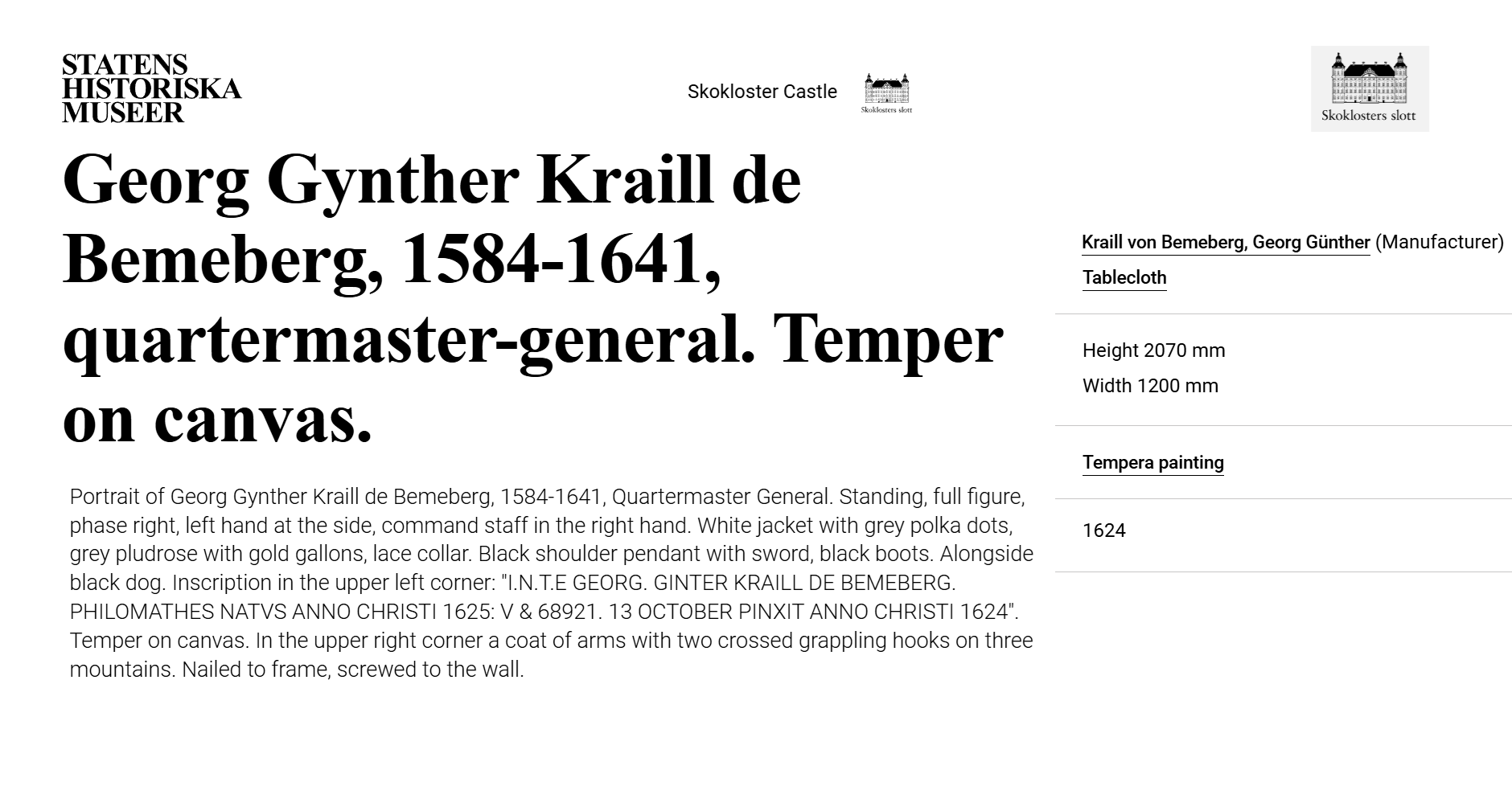 • At Skokloster Castle there are about twenty portraits, including a self-portrait, made by G. G. Kraill von Bemberg, as well as about thirty copper prints and drawings.