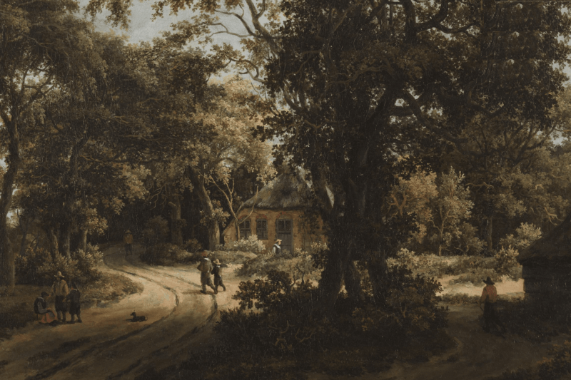 Meindert Hobbema, Woodland Scene with Travelers Near an Inn, 1663