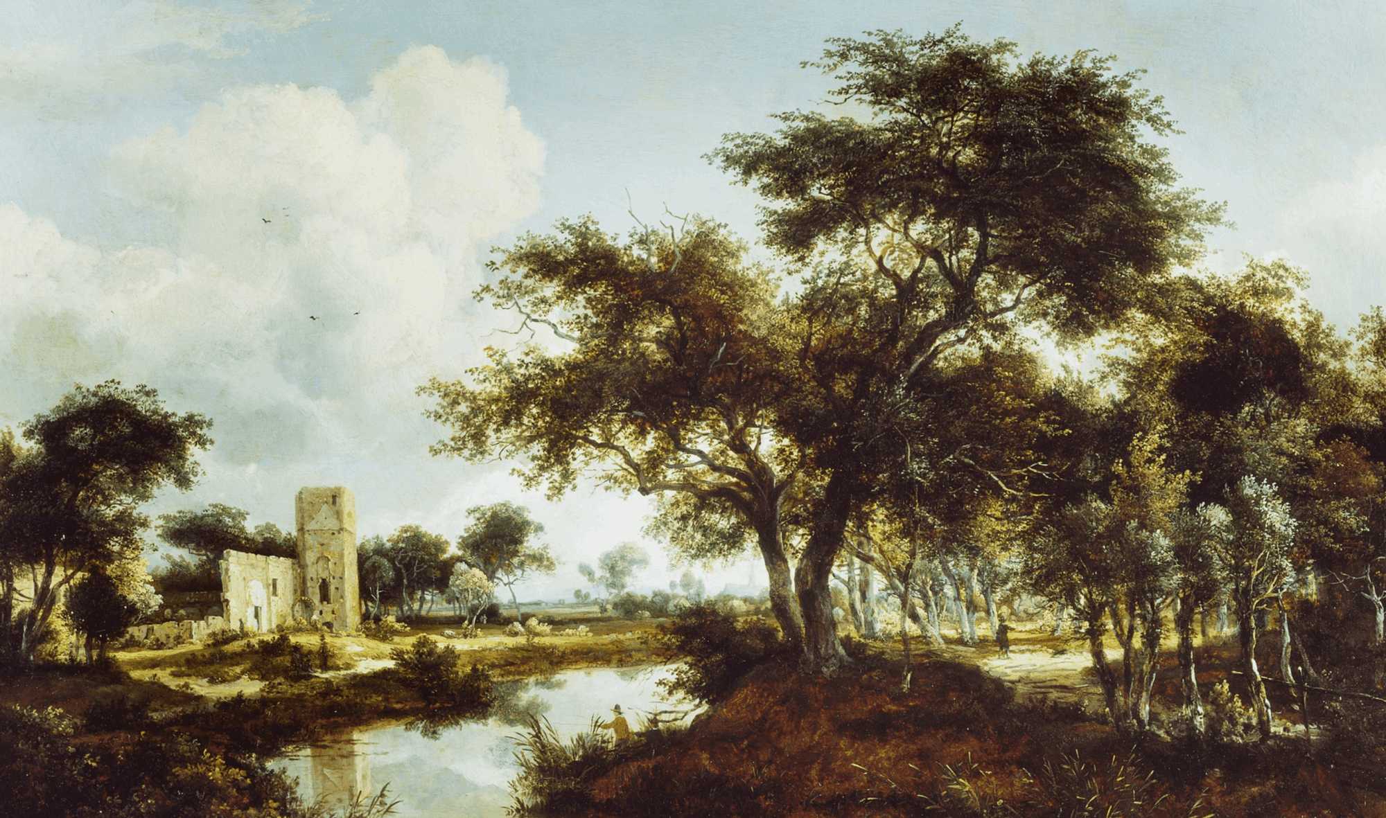 Meindert Hobbema, Landscape with Anglers and a Distant Town, c. 1664-65