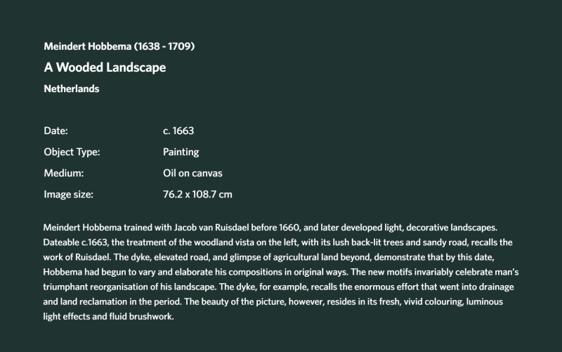 Meindert Hobbema, Woodland Road, c. 1670