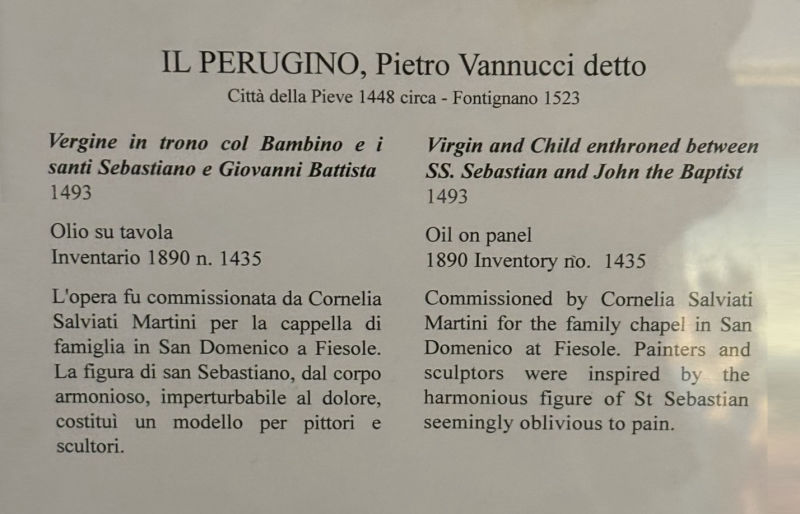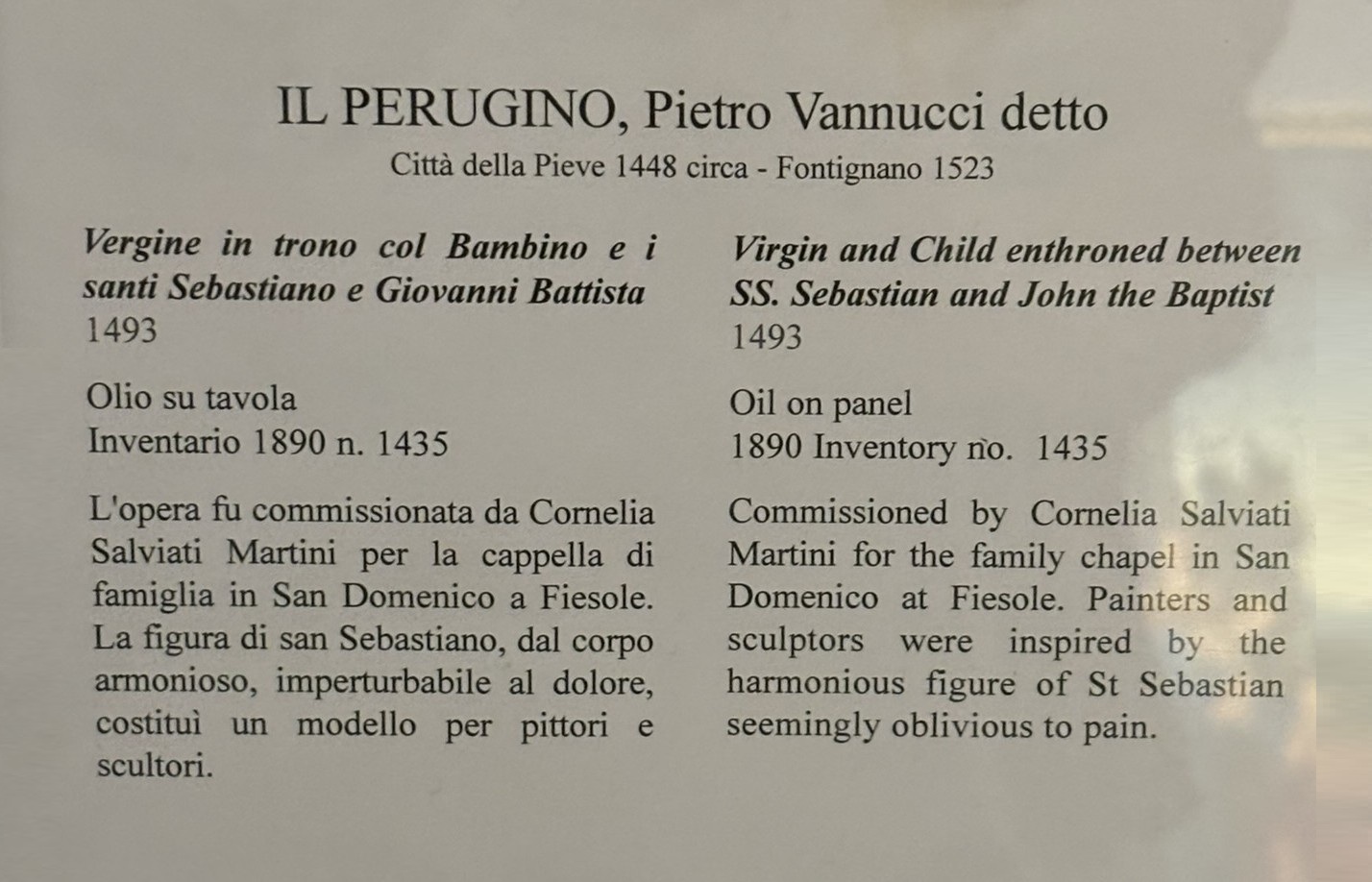 Perugino, Virgin and Child enthroned between S. Sebastian and John the Baptist, 1493