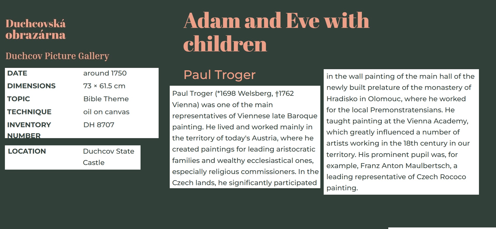 • Paul Troger’s style, particularly in his frescoes, dominated Austrian painting until the end of the 18th century.