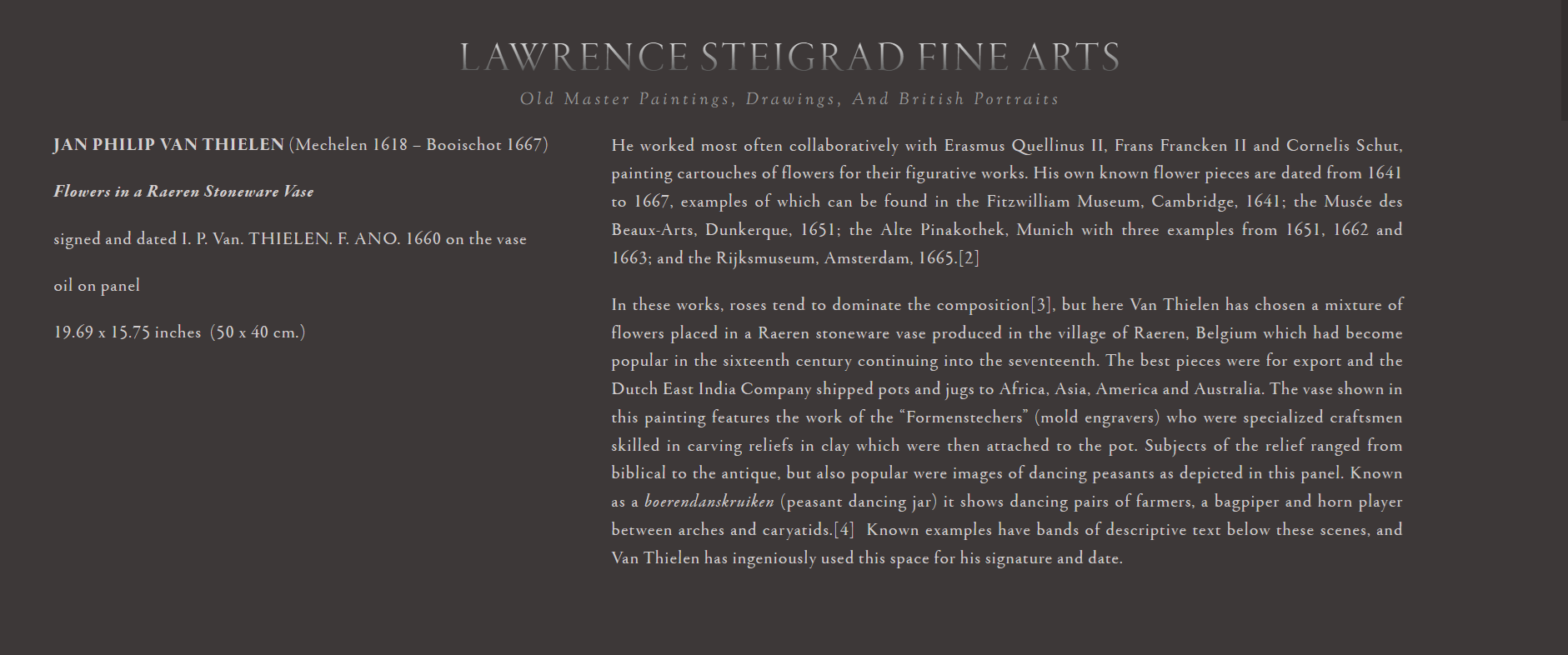 • Three of van Thielen’s daughters became flower painters: Maria Theresa van Thielen, Anna-Maria and Francisca-Catherina.