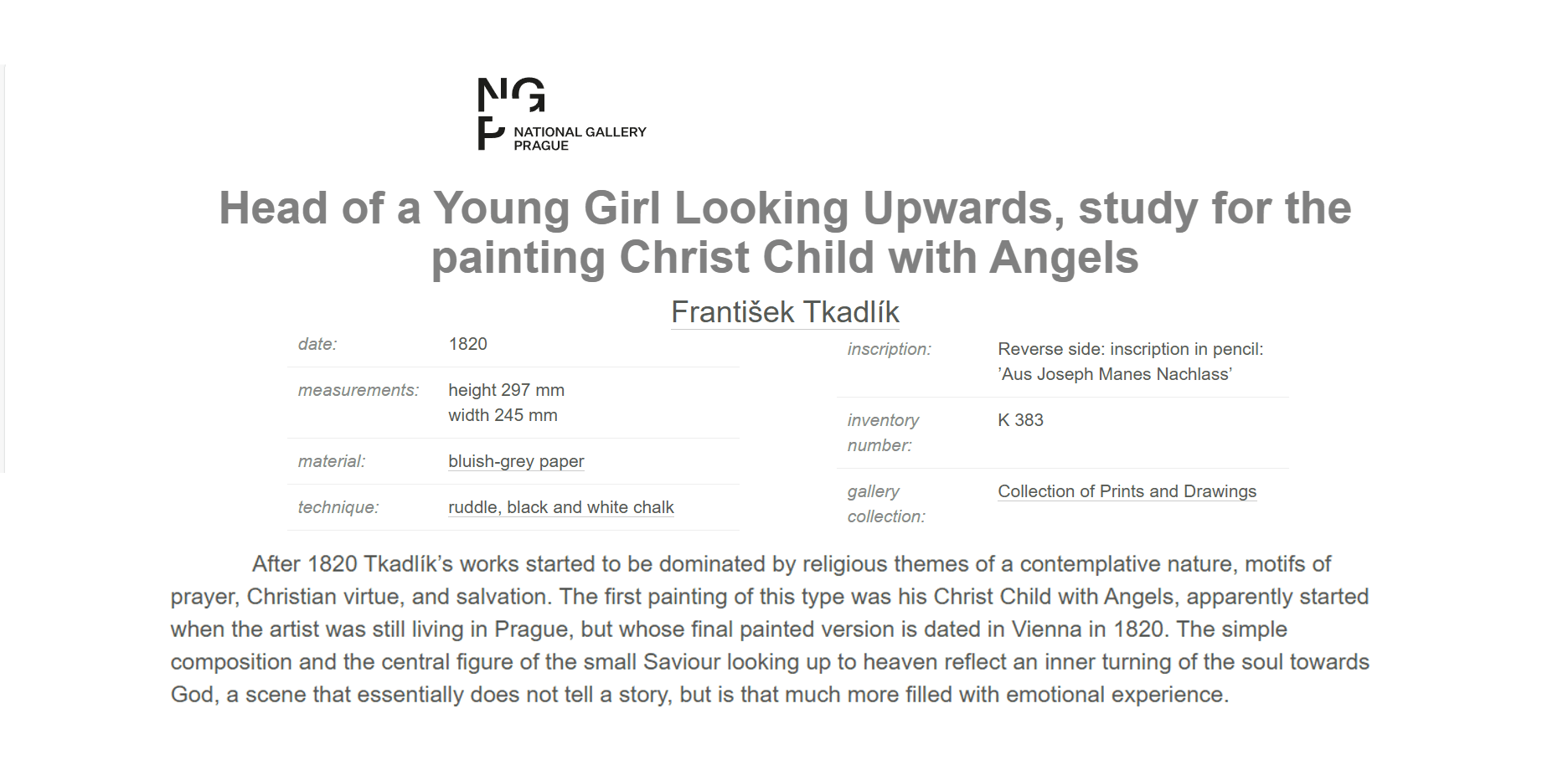 • The displayed painting is a crop from: František Tkadlík, Head of a Young Girl Looking Upwards, 1820.