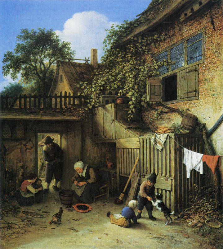 Poulicni hrac na nineru. Hurdy Gurdy Player in Front of a Tavern (1643)