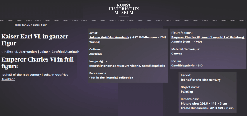 • The Imperial and Royal Gallery in Vienna preserves his portrait of Emperor Charles VI, and the monumental equestrian portrait of Prince Eugene of Savoy, which is in the Museum of Military History in Vienna, is particularly striking and well-known.