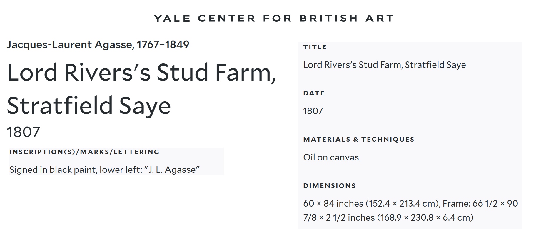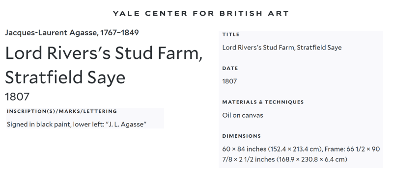 • In 1800, with the support of Lord Rivers, whom Agasse had met several years earlier in Geneva, the artist settles in London as a painter of the horses and dogs of rich landowners.