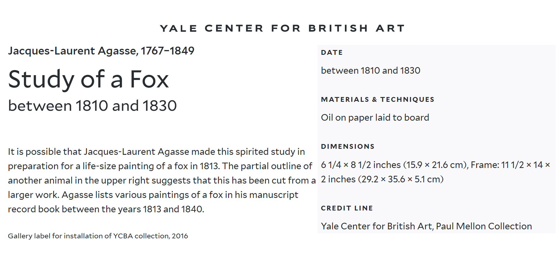 • Until 1845 Agasse regularly exhibits at the Royal Academy of London; it is a presence that stretches back four decades.