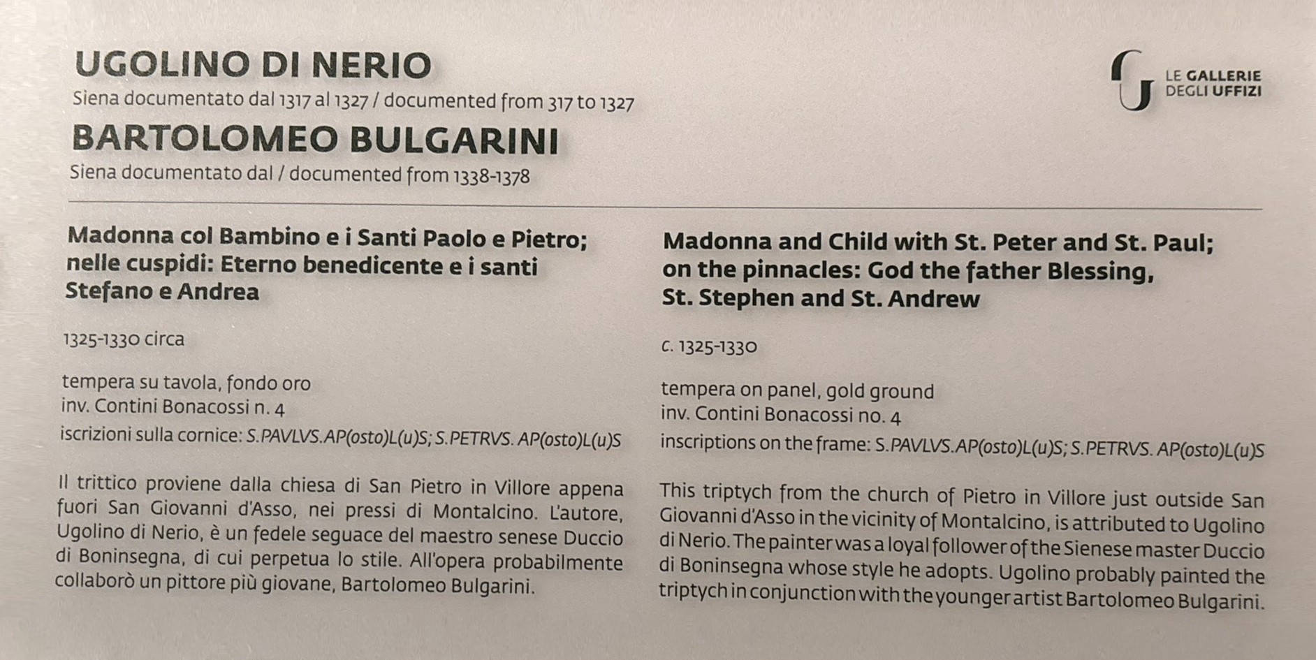 • Bulgarini was almost exclusively a panel painter, which is rare among 14th century Sienese painters.