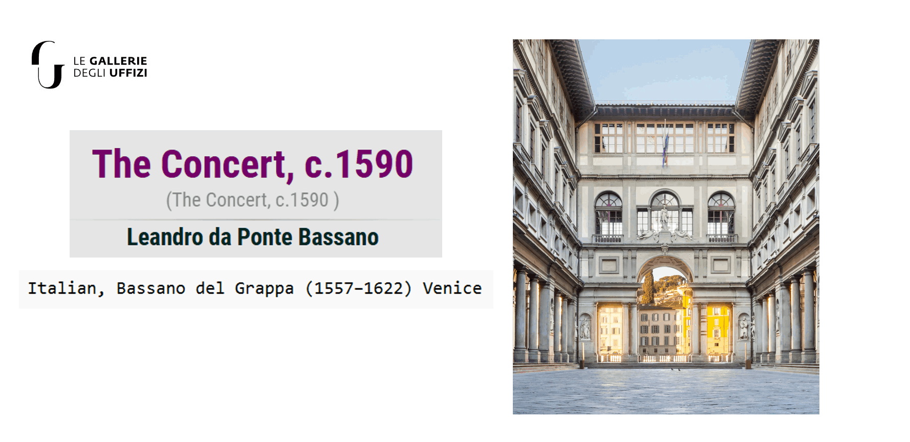• In addition to his many portraits and religious pieces, Leandro painted secular, genre works, such as his Concert, now in the Uffizi Gallery, and his Kitchen Scene, displayed in the Indiana University Art Museum in the United States.