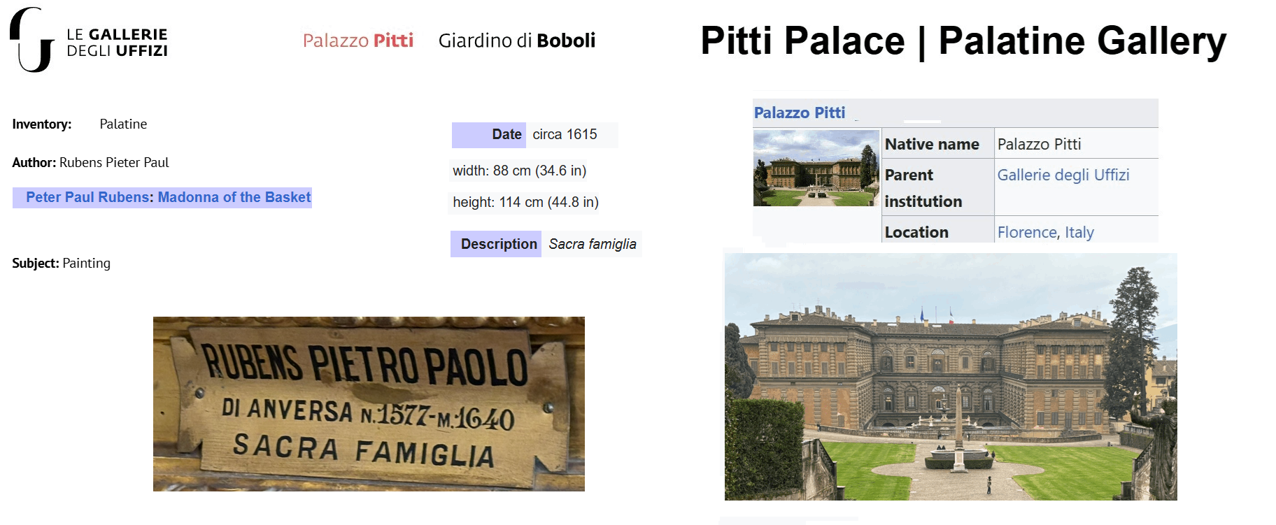 Original, Palatine Gallery, Pitti Palace, Florence. Visited in 2024.
