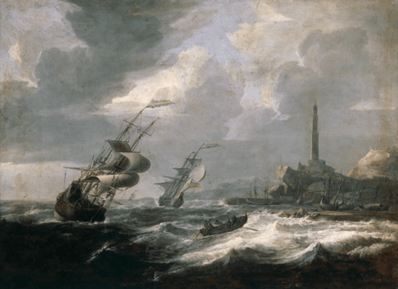 According to Houbraken, his most popular pieces were of Italian ports with strange boats moored here.