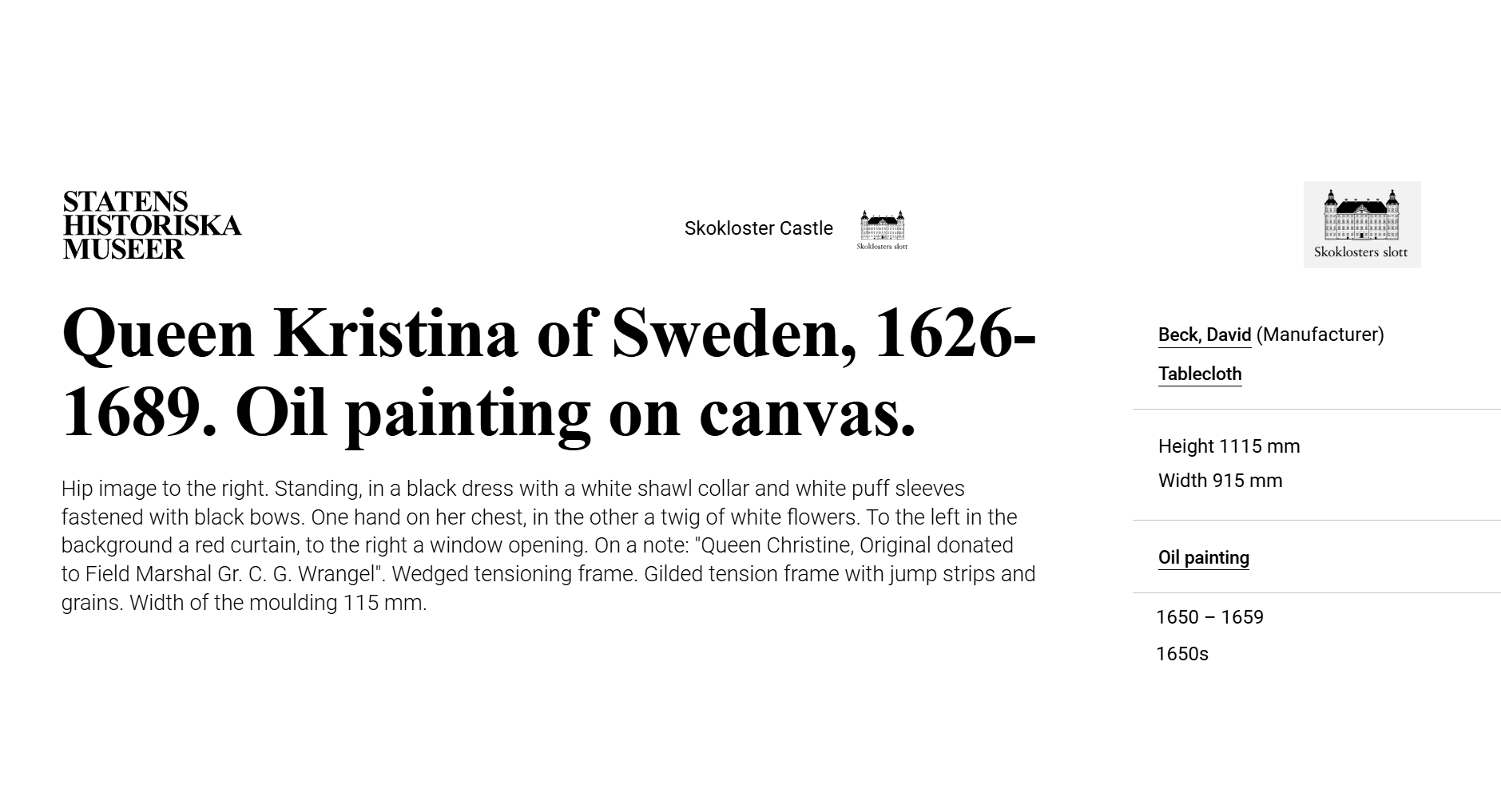 • In 1647, he was appointed portrait painter and valet de chambre to Queen Christina of Sweden in Stockholm.