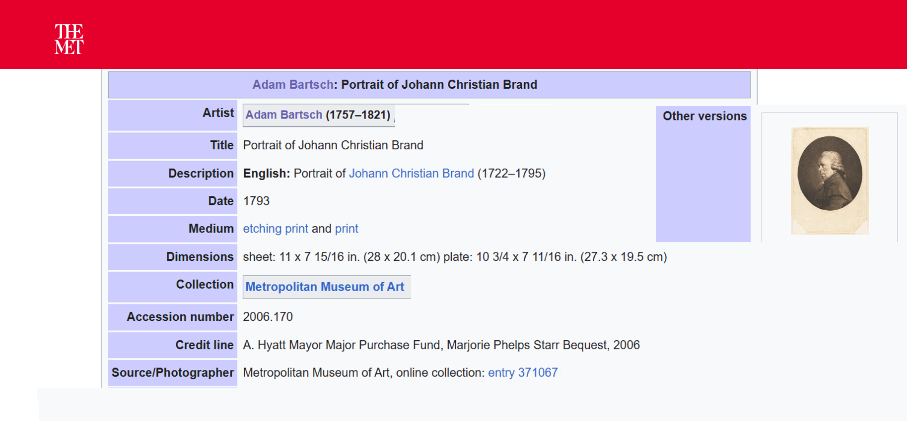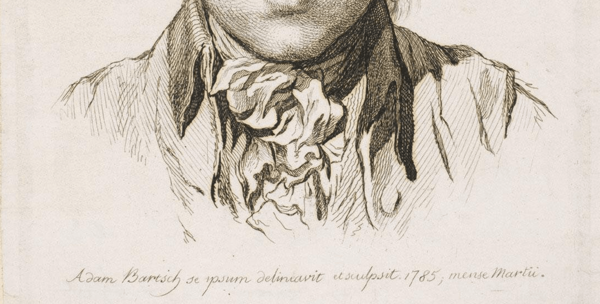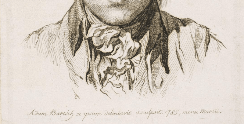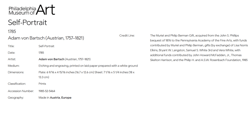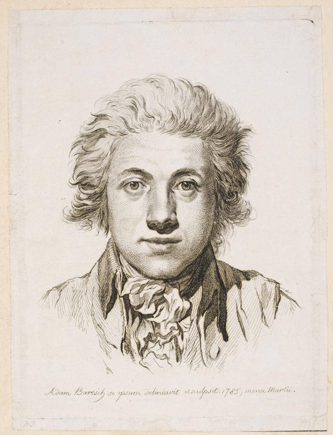 • The displayed painting is a crop from Adam von Bartsch, Self-Portrait, 1785.