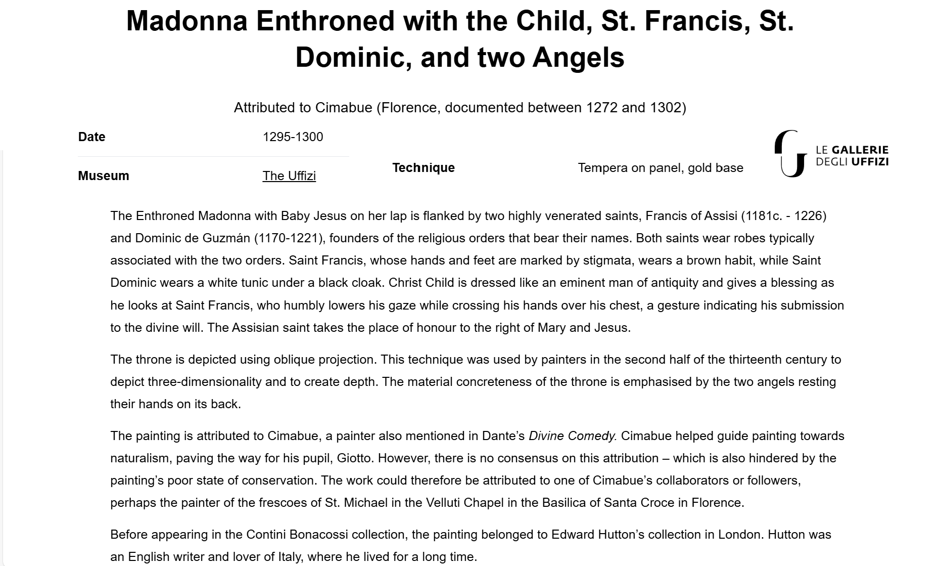 • The document from Rome, dated June 8, 1272, records the painter's testimony on the patronage that Cardinal Ottobono Fieschi assumed on behalf of Pope Gregory X of a monastery of nuns in San Damiano which for the occasion, was rededicated to St. Augustine and his Rule.