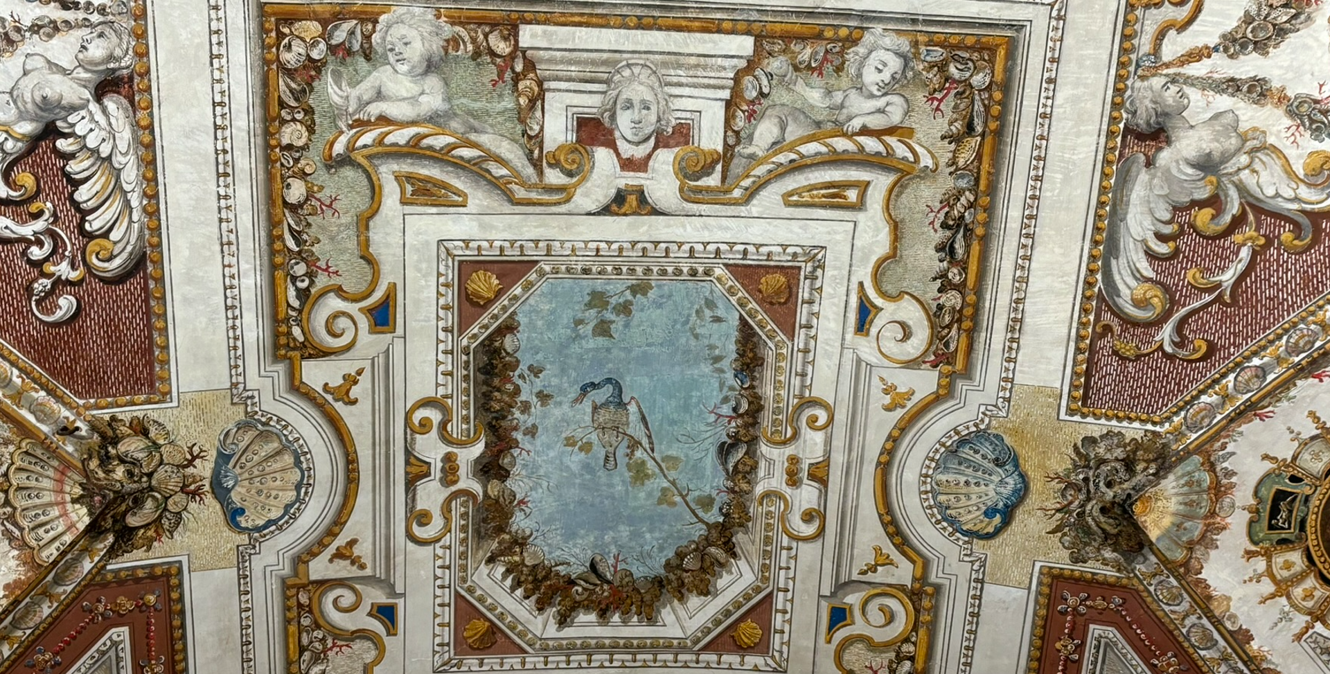 Orazio Riminaldi, he painted the four Evangelists and angels (1597) in the cupola of the Cathedral of Pisa; a Birth of the Virgin and Annunciation (1598) in the choir; and decoration of the organ in 1602.