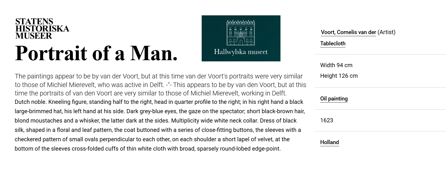 • In 1619 Van der Voort was the head of the Guild of St. Luke.