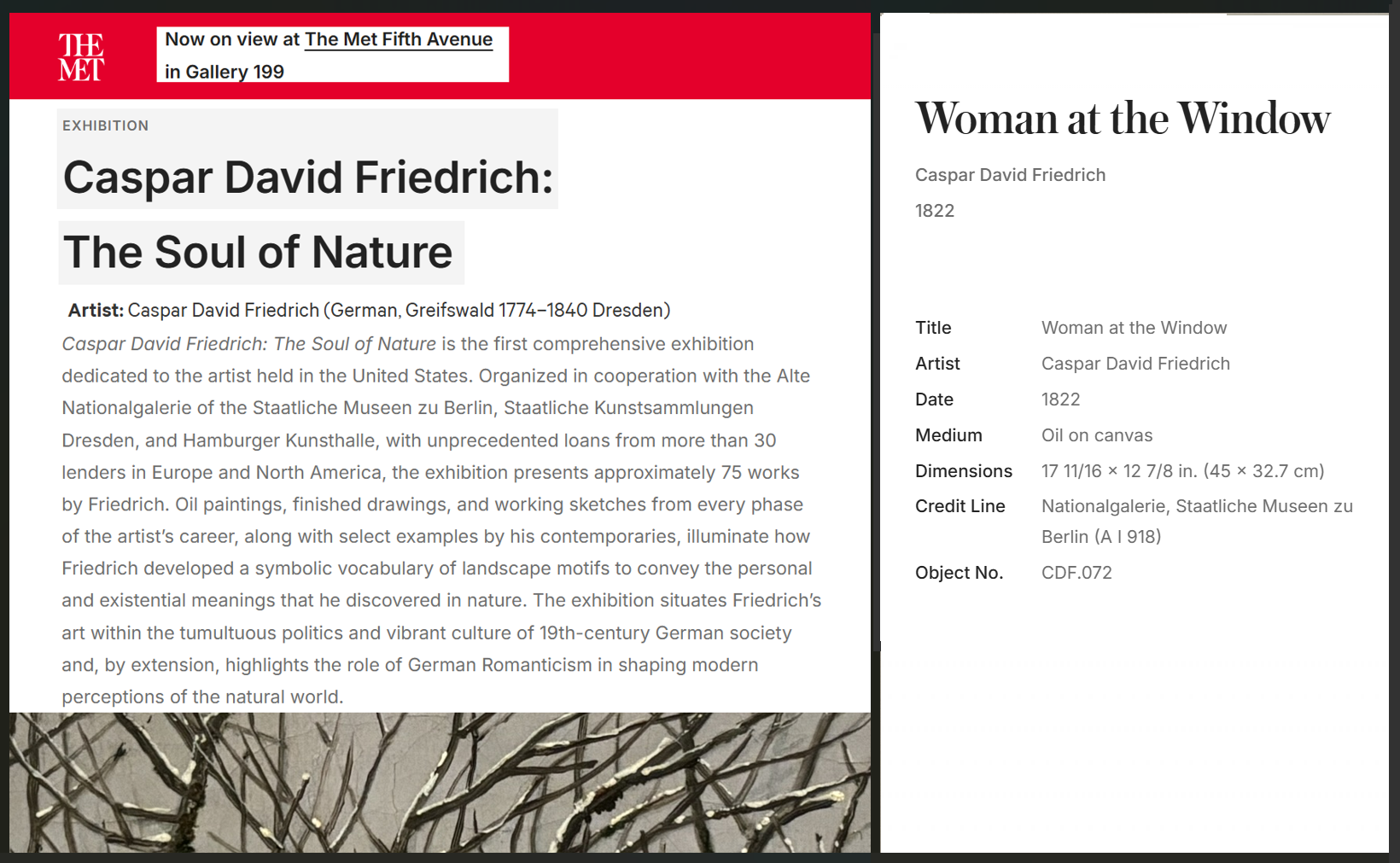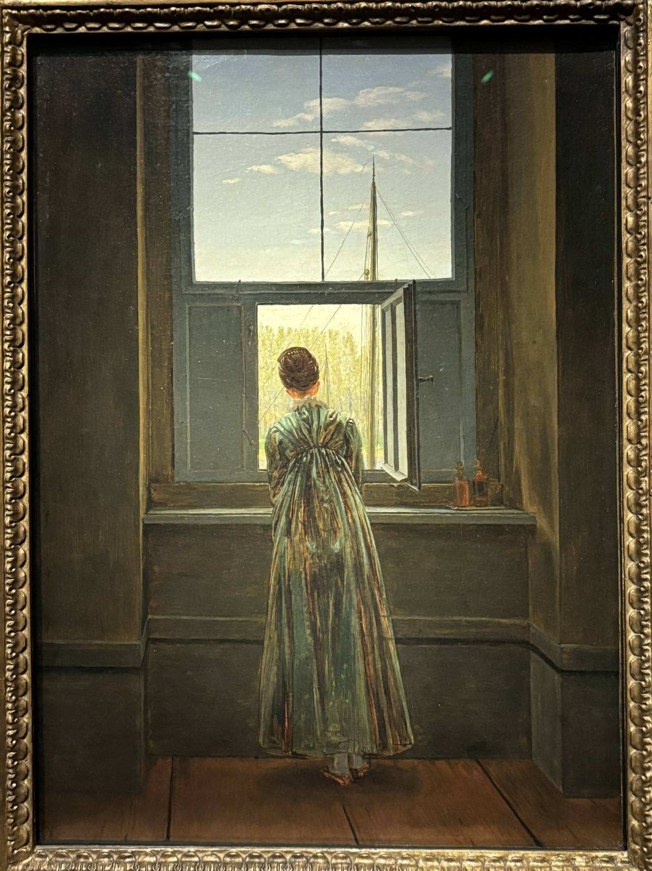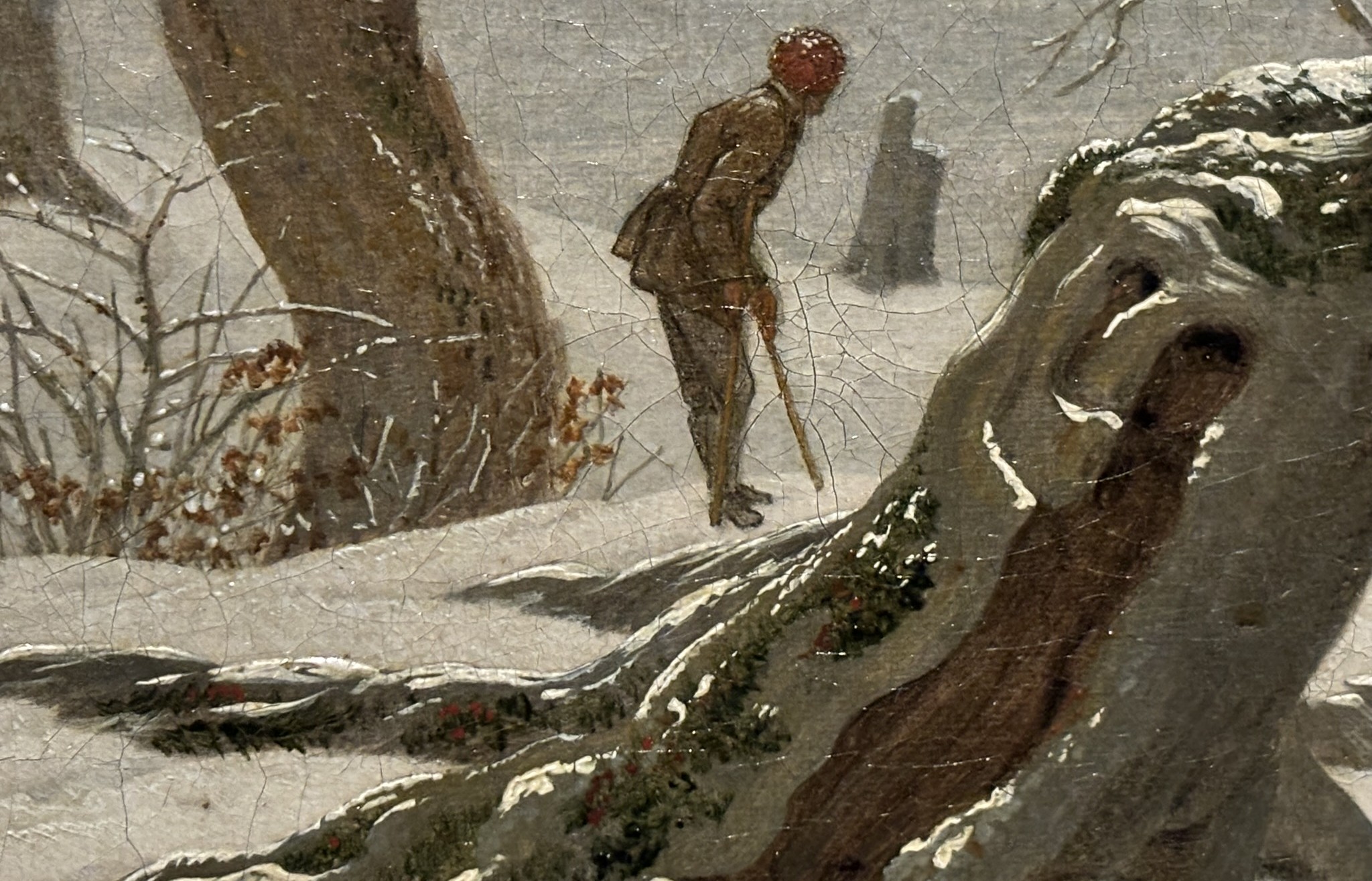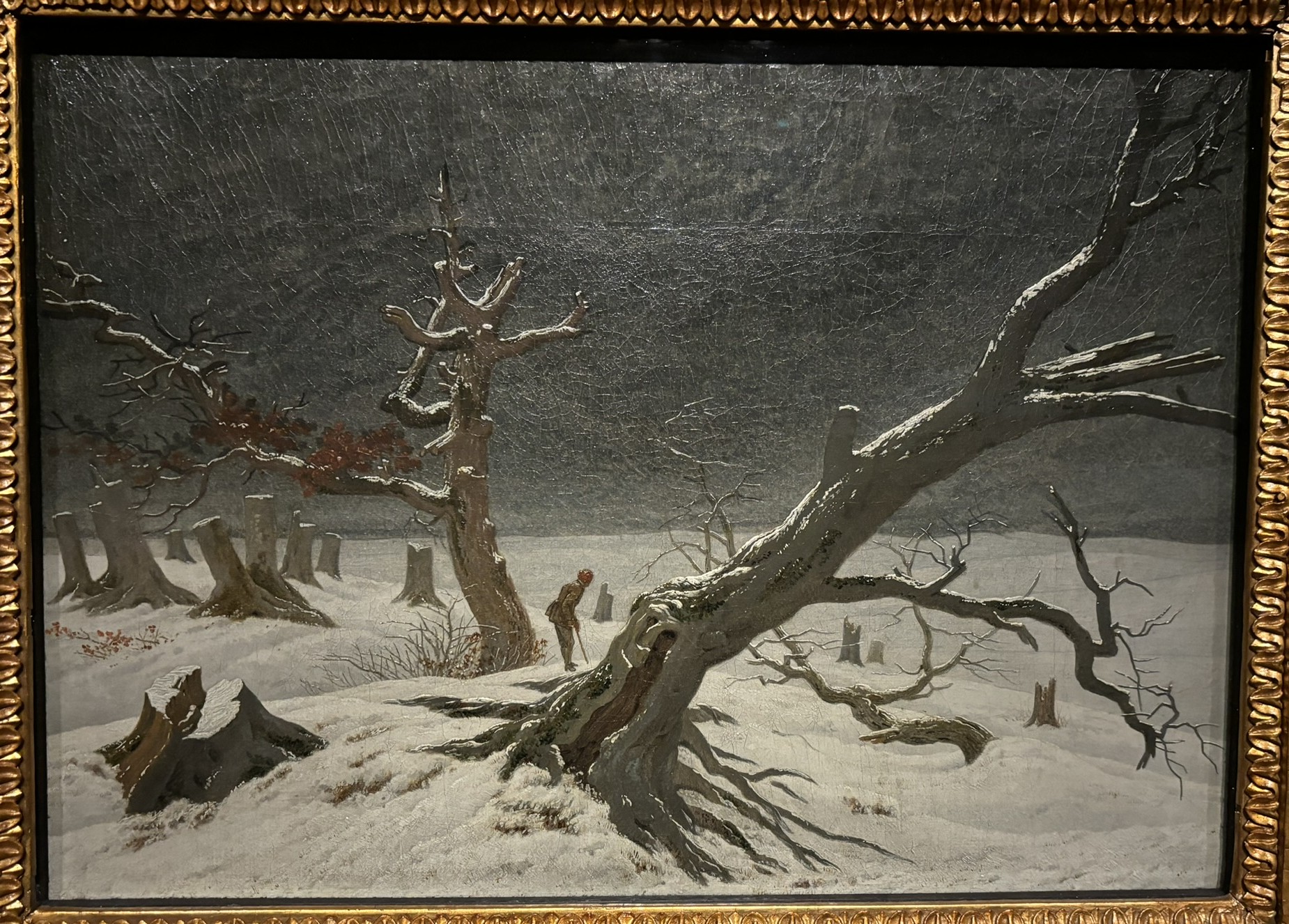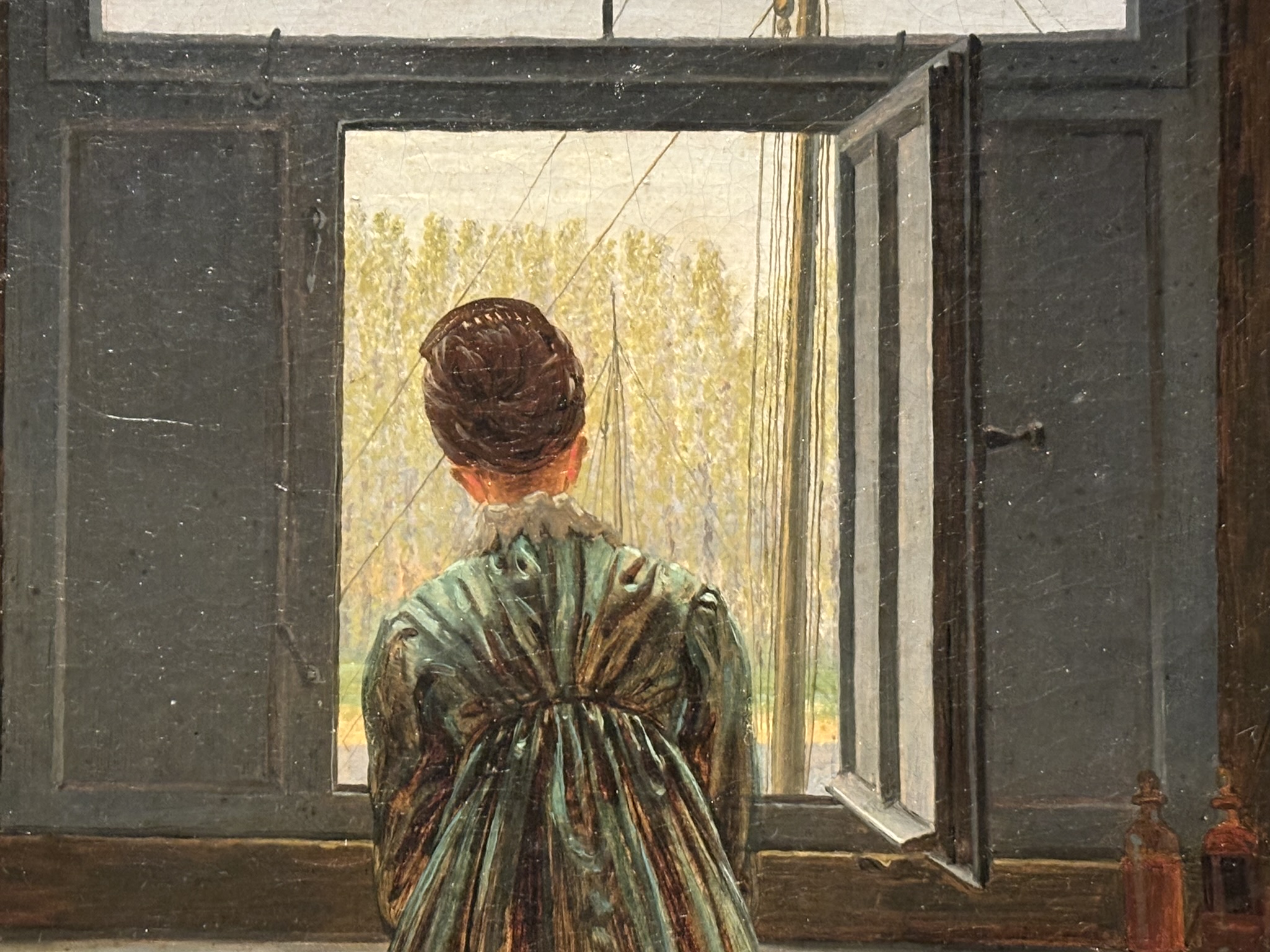 • The displayed painting is a crop from Georg Friedrich Kersting, Caspar Friedrich David in his Studio, 1811.
