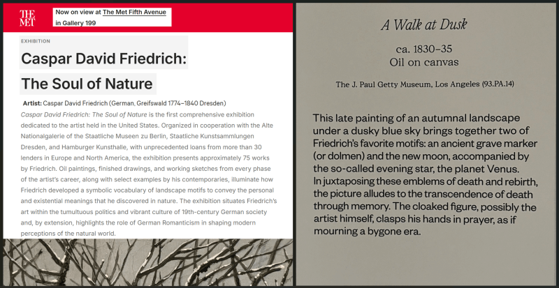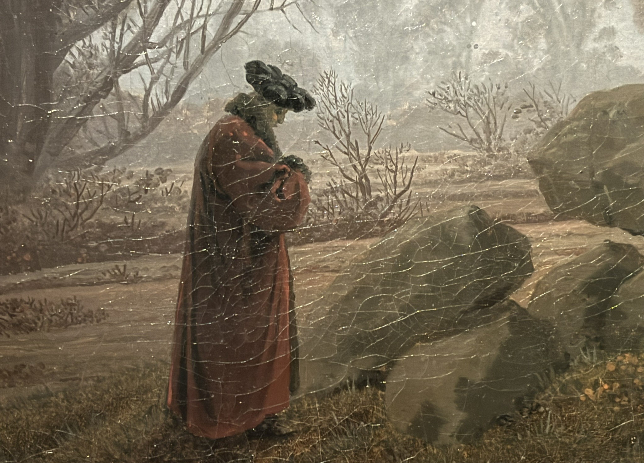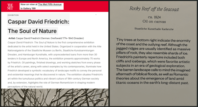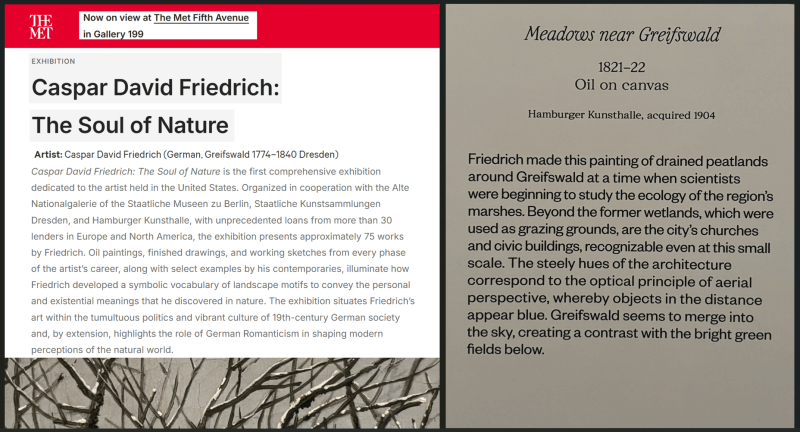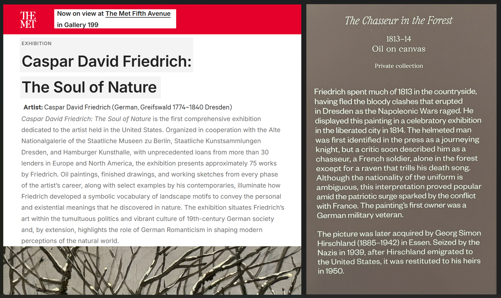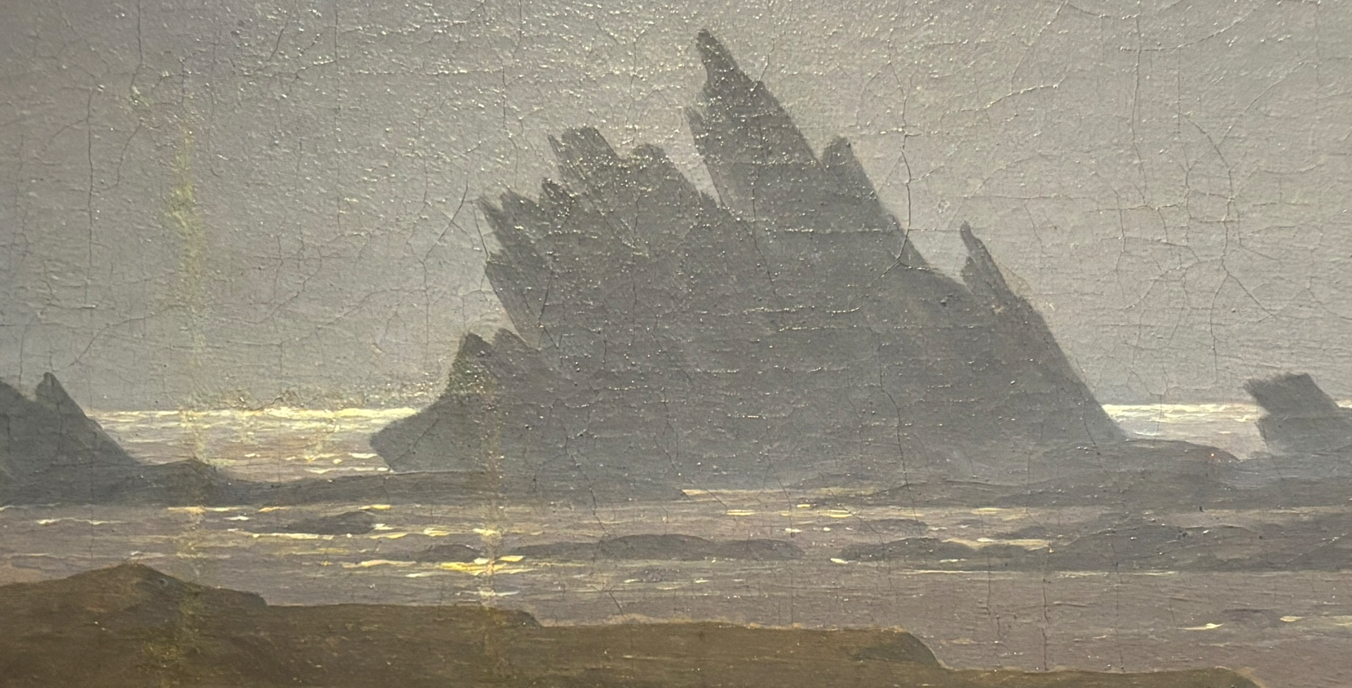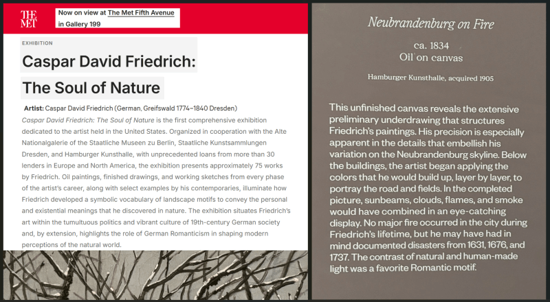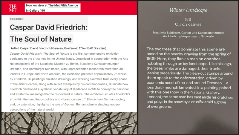 • The displayed painting is a crop from Georg Friedrich Kersting, Caspar Friedrich David in his Studio, 1811.