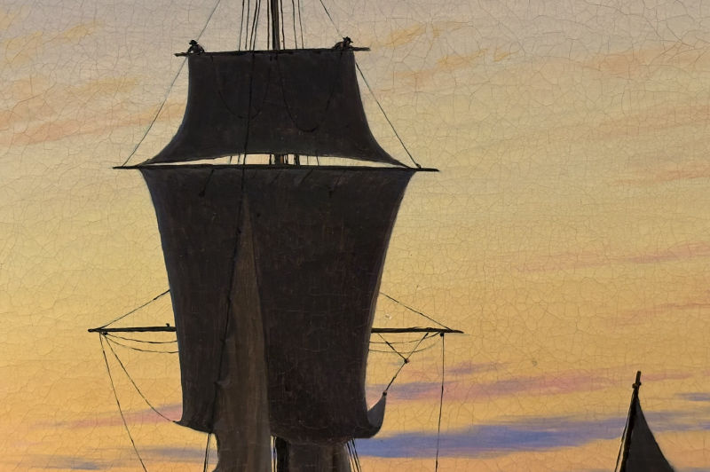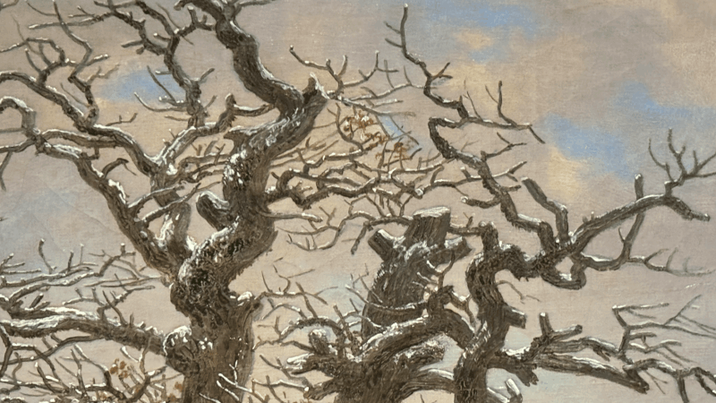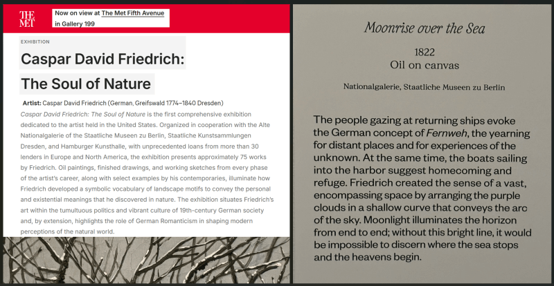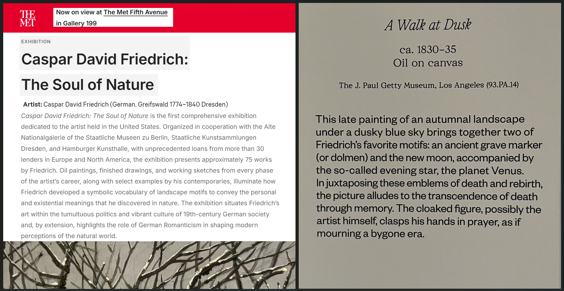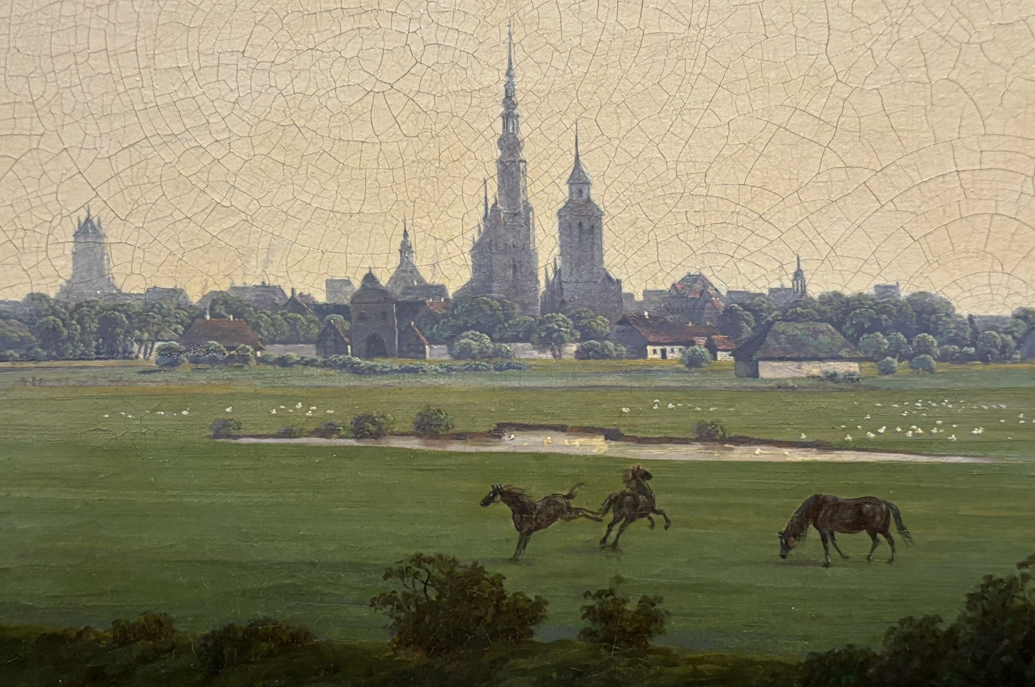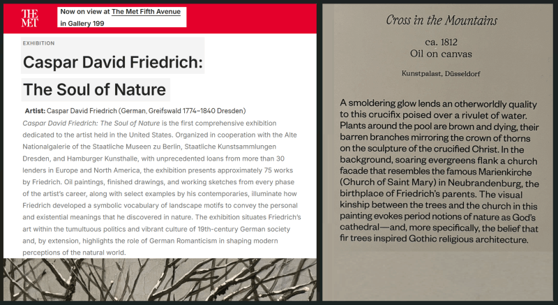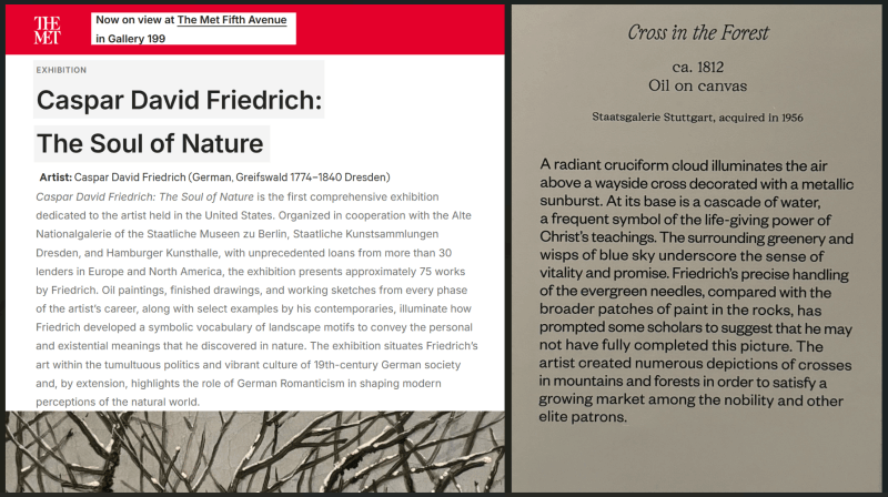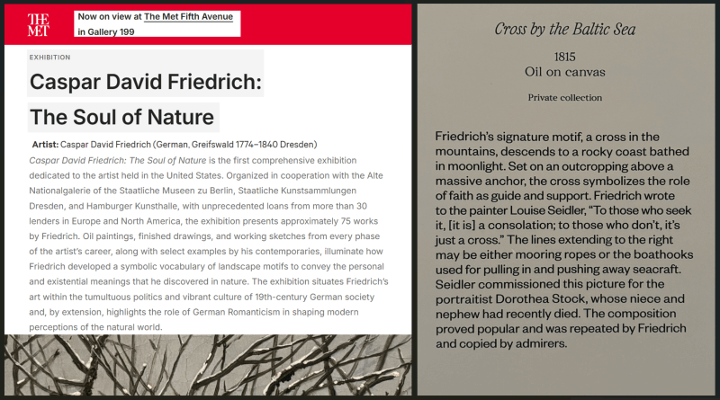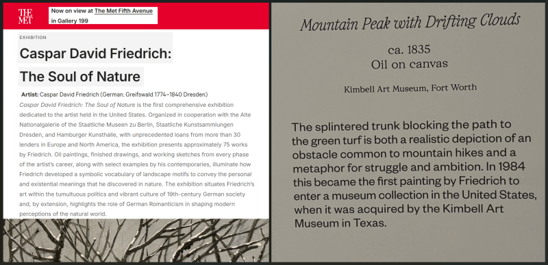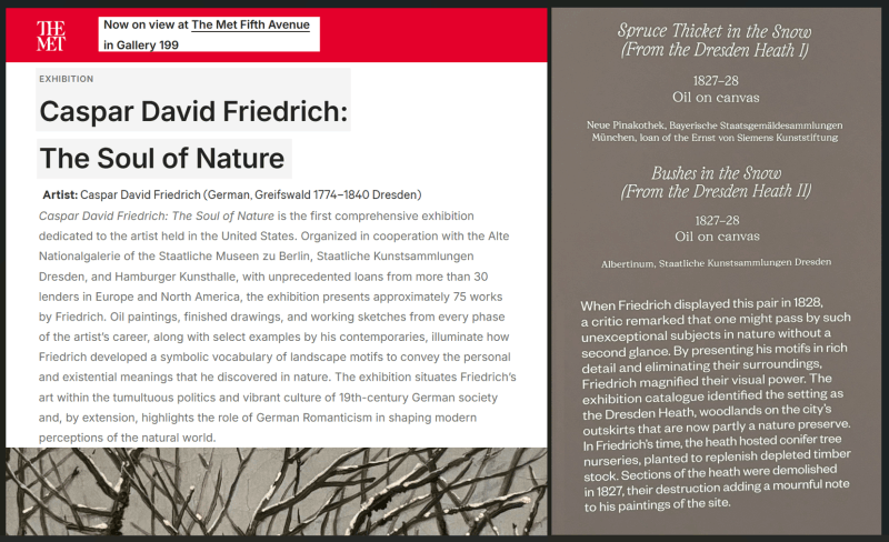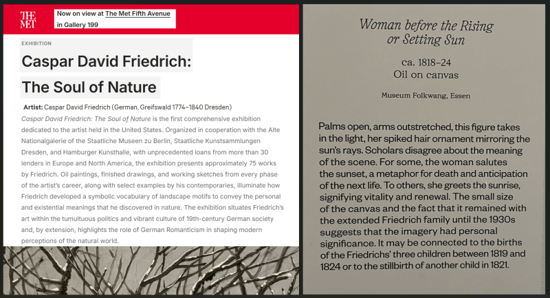 • The displayed painting is a crop from Georg Friedrich Kersting, Caspar Friedrich David in his Studio, 1811.