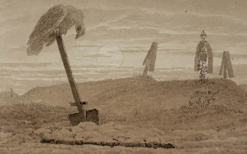 • However, the Dresden gallery houses a drawing of sepia from 1803, marked as Czech Landscape with a Bridge and a Chapel.