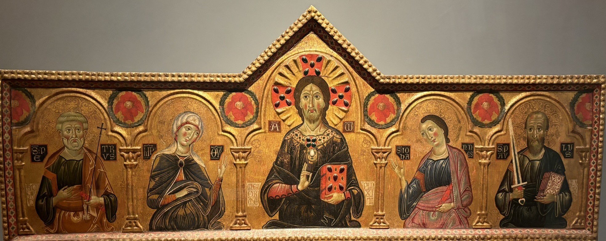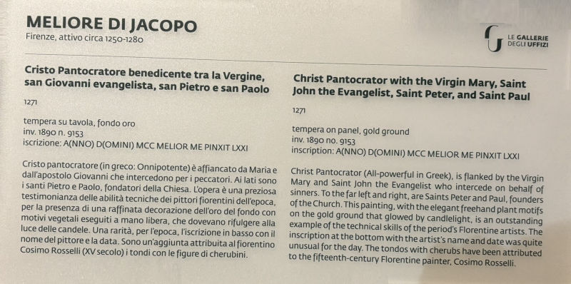 • Dated sometime between 1270 and 1275 is a "Madonna and Child with Two Angels"; originally at the church of Santa Maria, previously located in Bagnaldo, a district in Certaldo and now preserved at the nearby Museum of Religious Art.