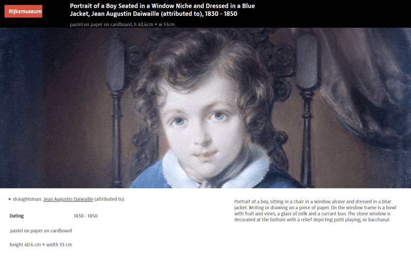 • The displayed painting is a crop from Jean Augustin Daiwaille, Self-portrait, 1810-1850.