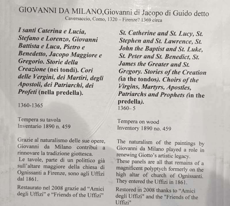 Hailing from Lombardy, the earliest documentation shows Giovanni in Florence on October 17, 1346, under the name Johannes Jacobi de Commo, listed amongst the foreign painters living in Tuscany.