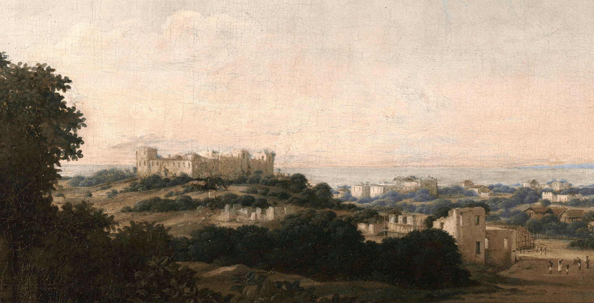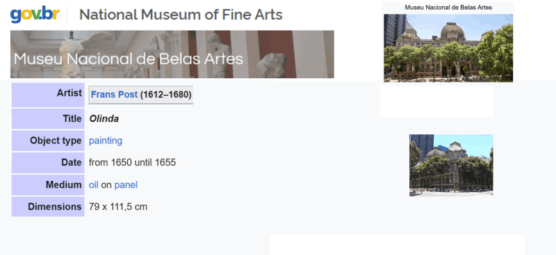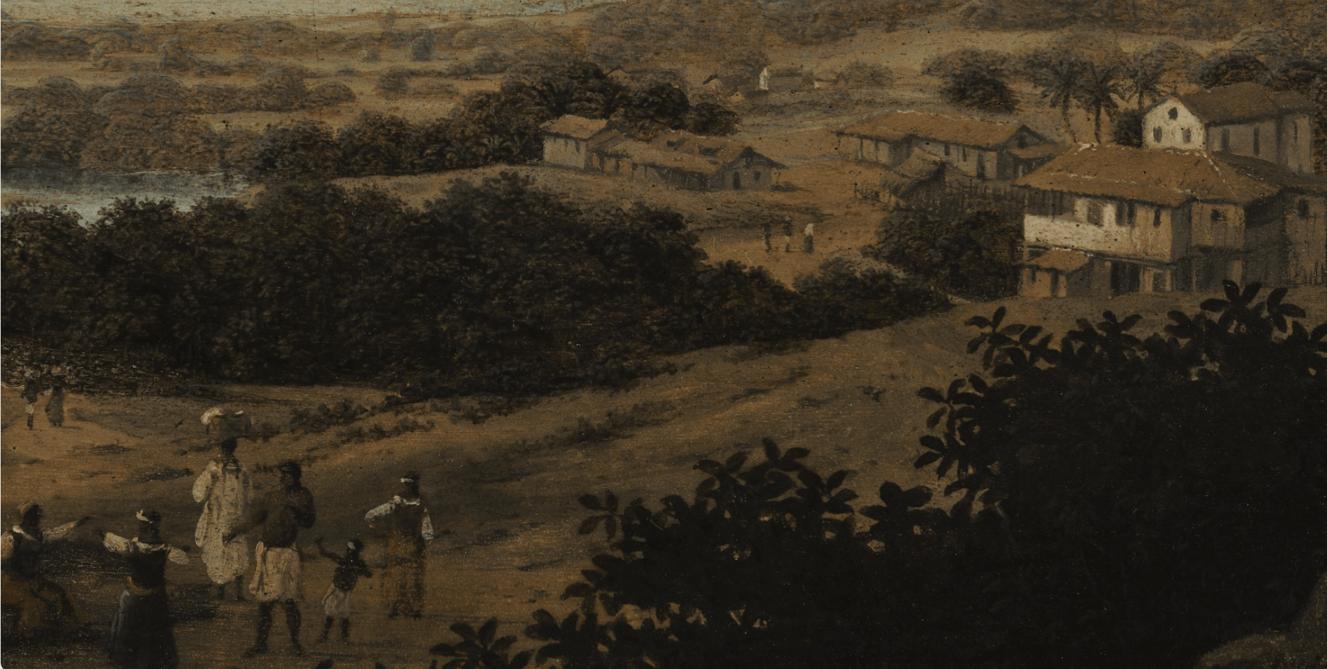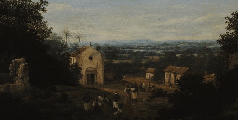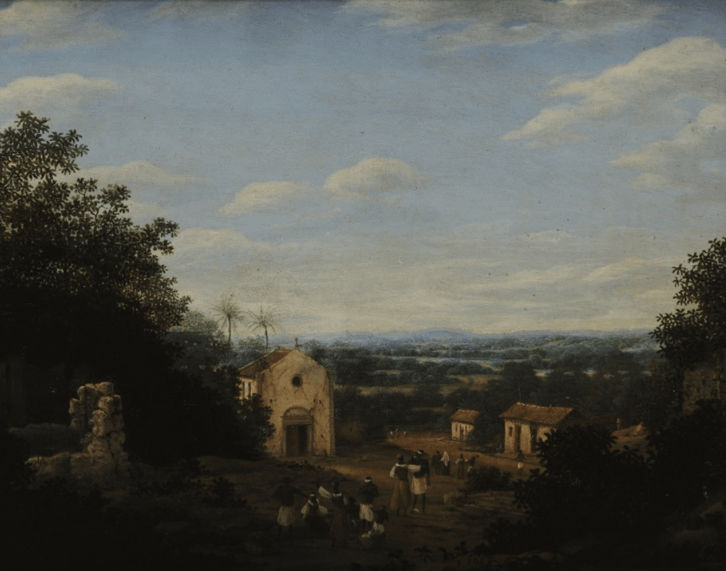 • The displayed painting is a crop from Frans Jansz Post, A Brazilian Landscape, 1650.