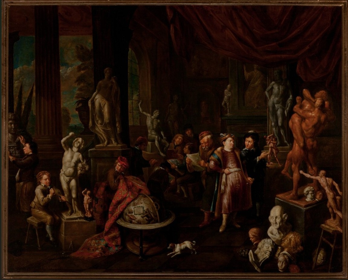 • Many of his paintings reflect a trend in Antwerp painting around 1700 that shows artists—often historical masters from earlier in the century in their studios, surrounded by paintings and sculptures, and teaching the craft to a young apprentice.