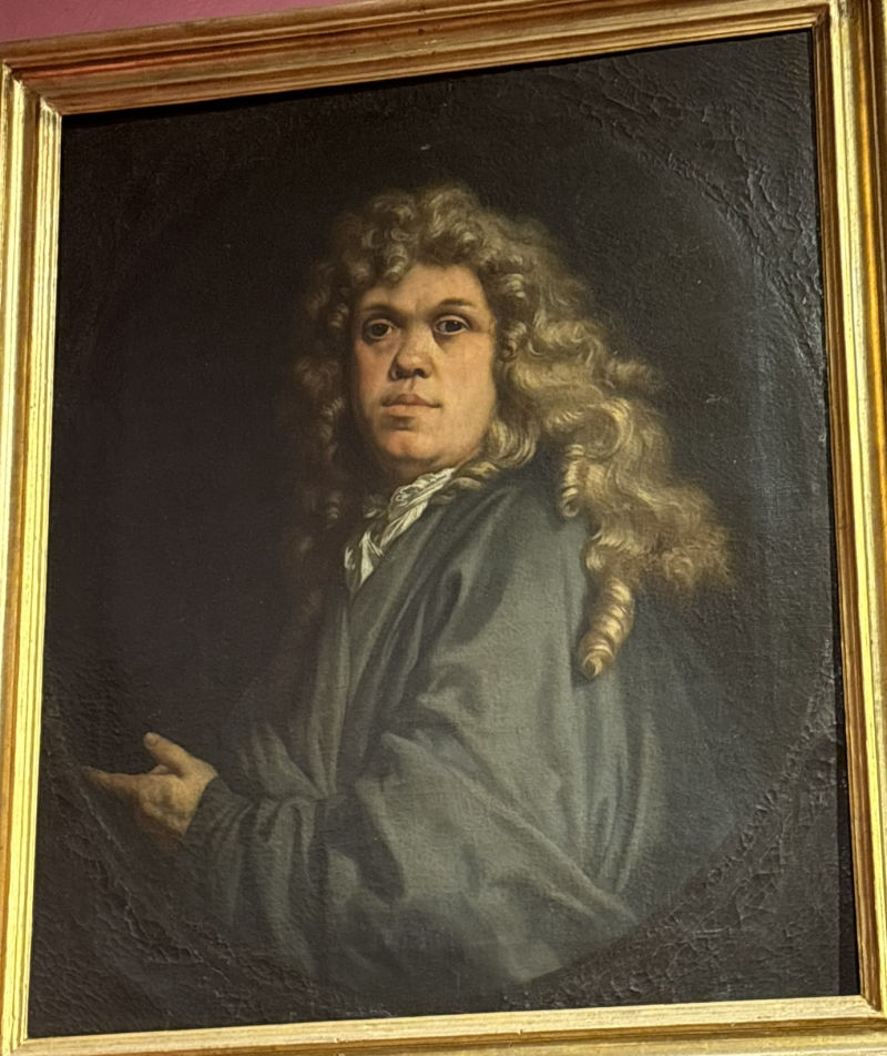• The displayed painting is a crop from: Rembrandt, Portrait of Gerard de Lairesse, 1665–67.