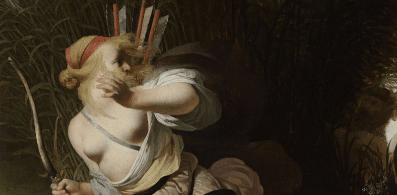 • The displayed painting is a crrop from: Cesar Boetius van Everdingen, Pan and Syrinx, c. 1637-1640.