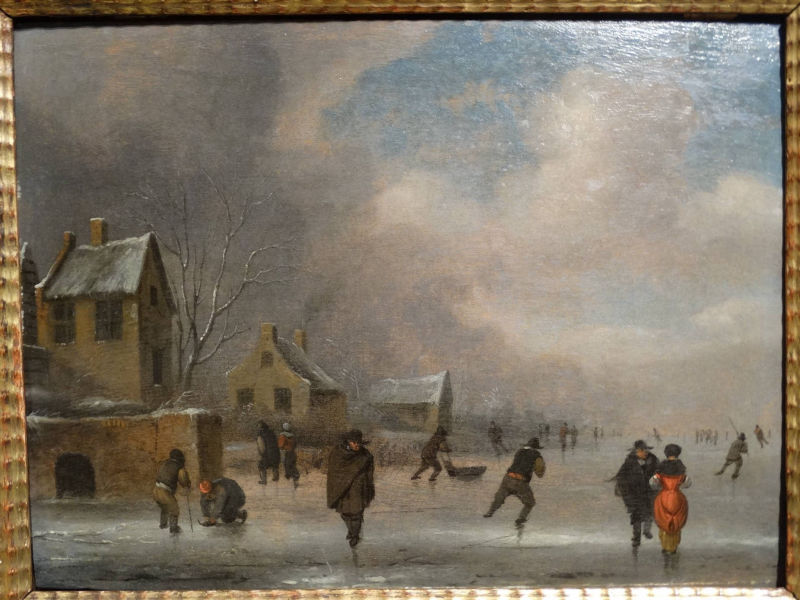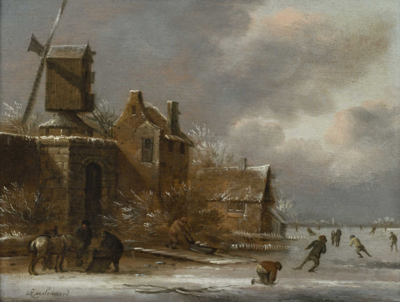 Claes Molenaer, Winter landscape with skaters, c. 1650