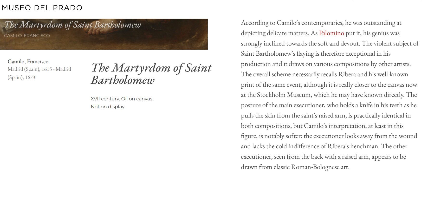 • Camilo painted for the monasteries of Madrid, Toledo, Alcalá, and Segovia.
